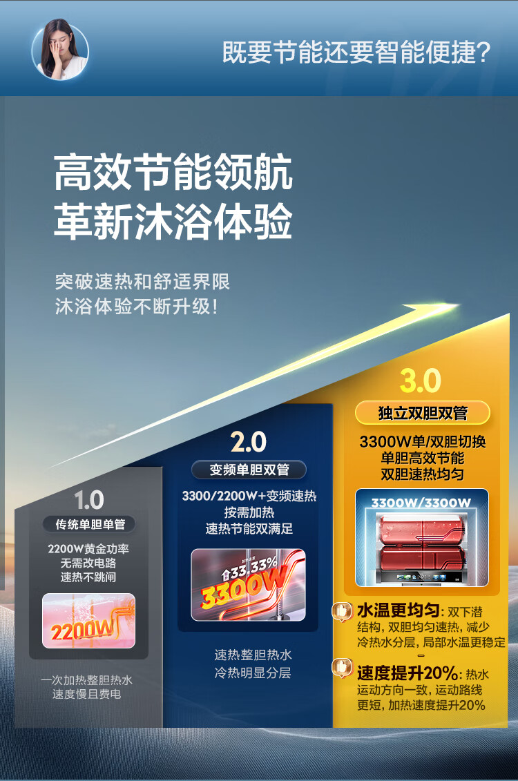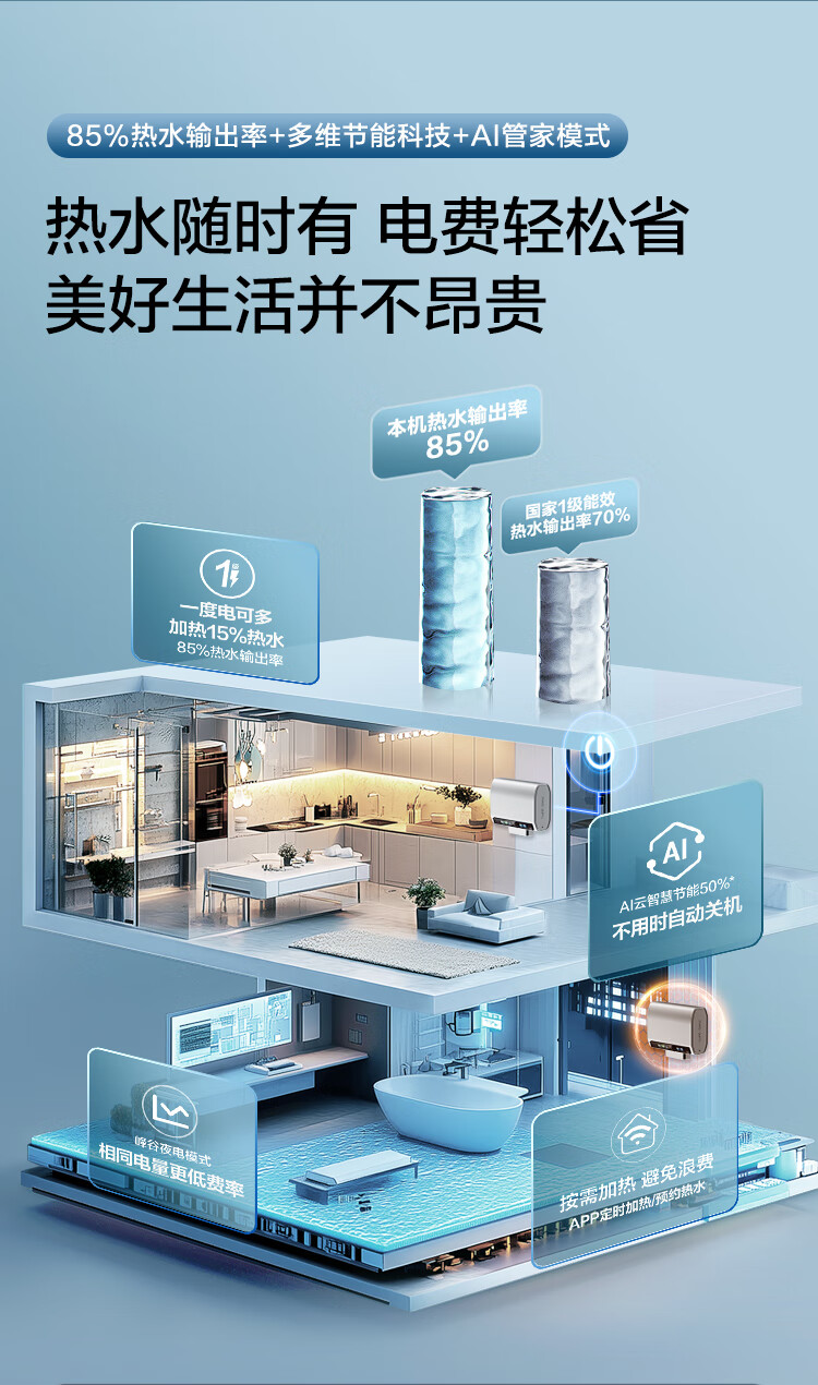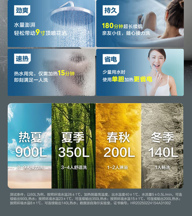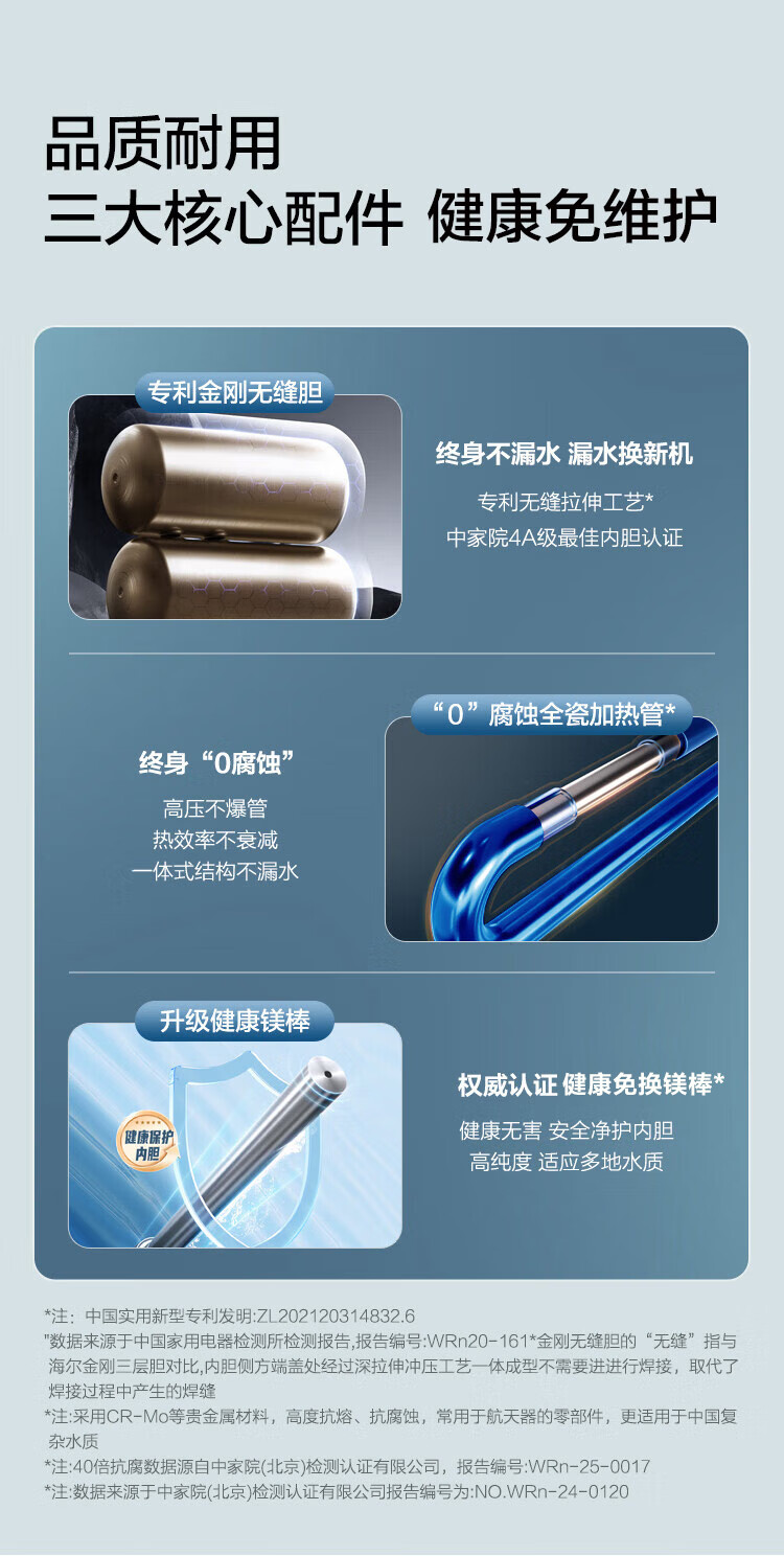 • 商品名称:海尔(Haier)双胆扁桶电热水器60升麦浪BK5PRO 富锶小蓝瓶净肤洗 免清洗 双3300W速热节能一级能效 EC6003HD-BK5PROKAU1/台