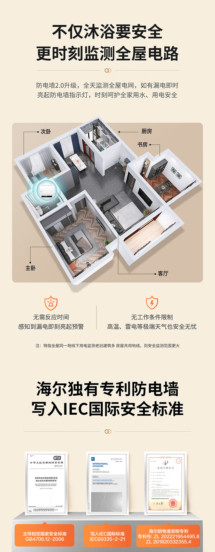 家用电器  > 厨卫大电  > 电热水器  >  海尔/Haier  >  海尔出品统帅 50升电热水器京东自营上门安装2200W速热保温专利防电墙家用储水式LEC5001H-NQ3 LEC5001H-NQ3/台