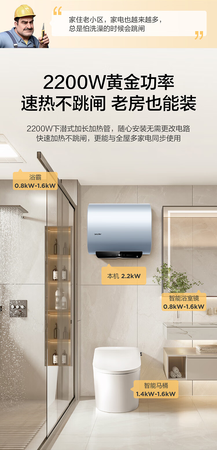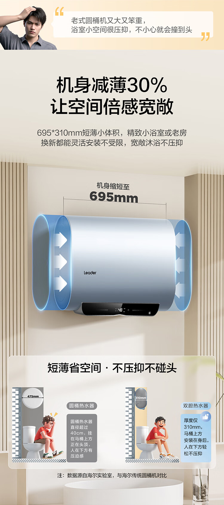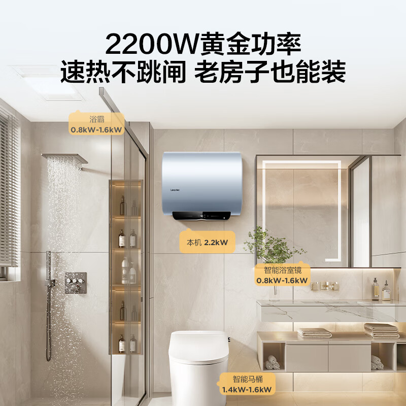 海尔出品统帅 60升扁桶电热水器京东自营上门安装2200W节能速热一级能效家用储水式F1PROK LEC6001HD-F1PROK/台