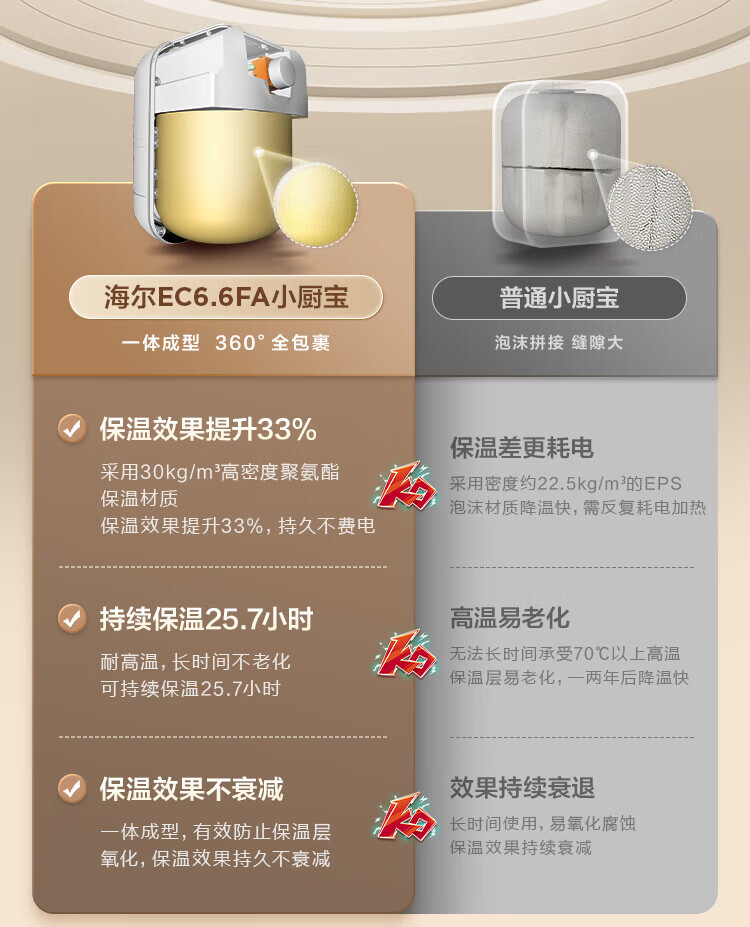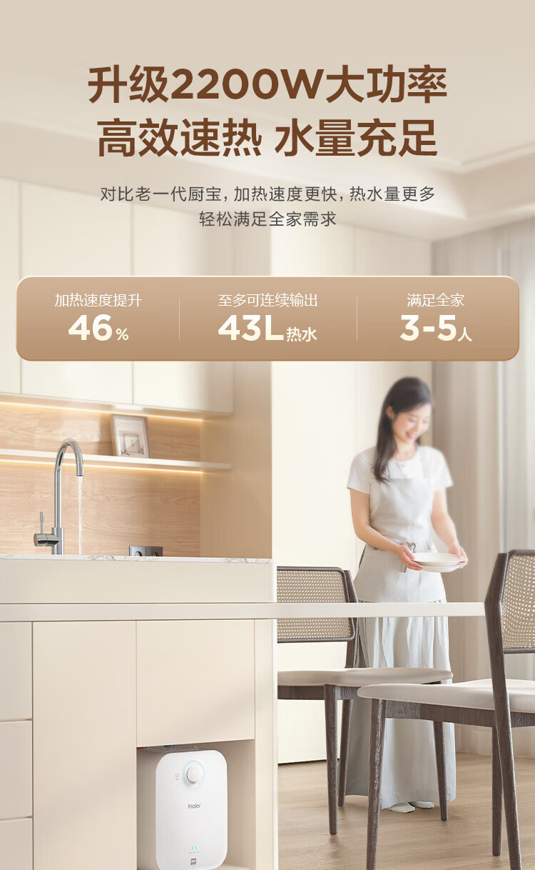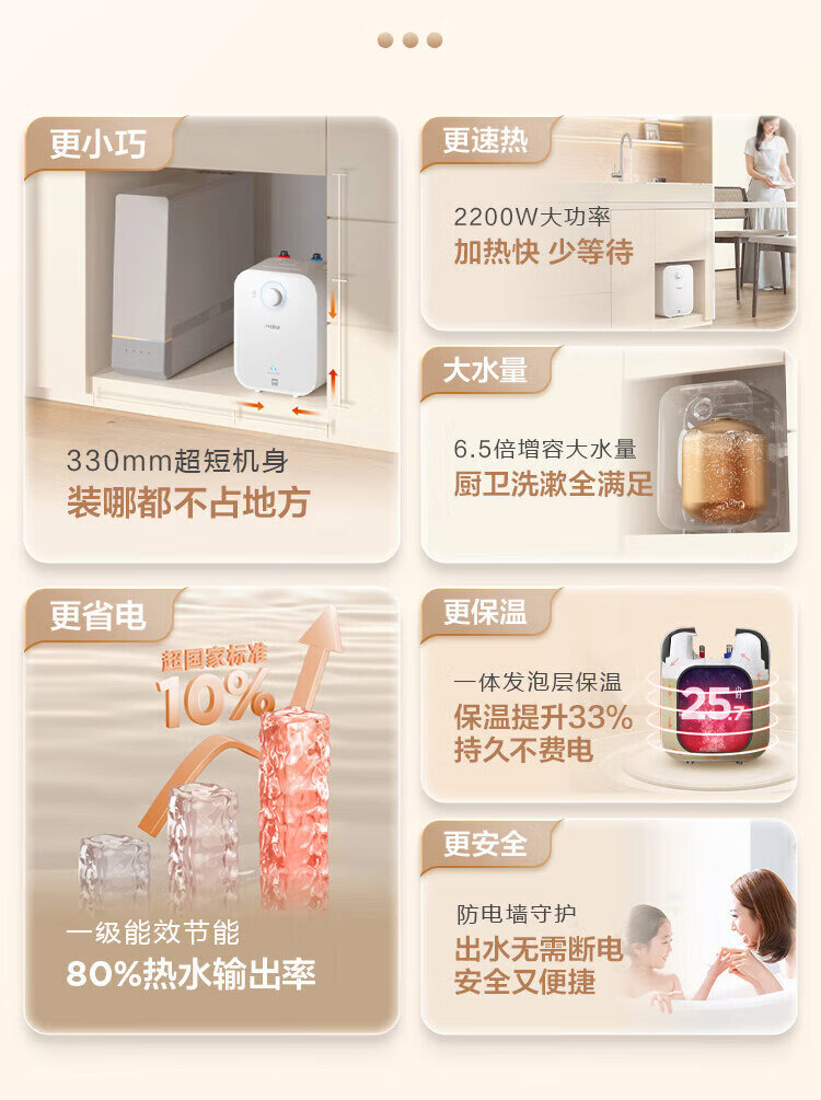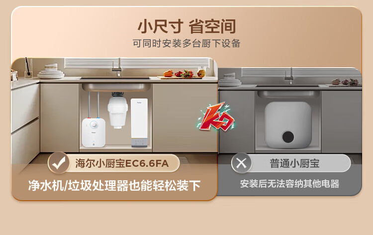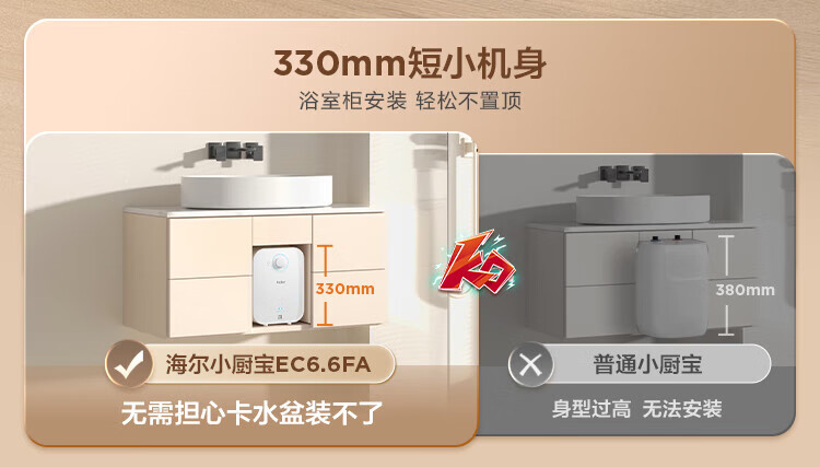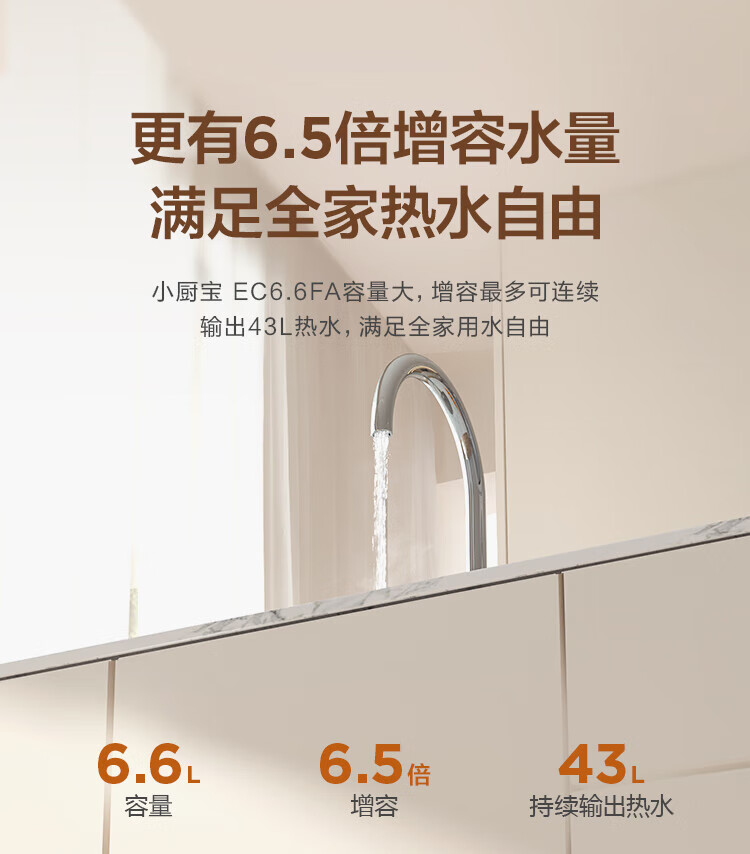 • 商品名称:海尔小厨宝电热水器6.6升 EC6.6FA 一级能效 2200W速热家用厨房小型储水式节能保温热水宝 EC6.6FA/个