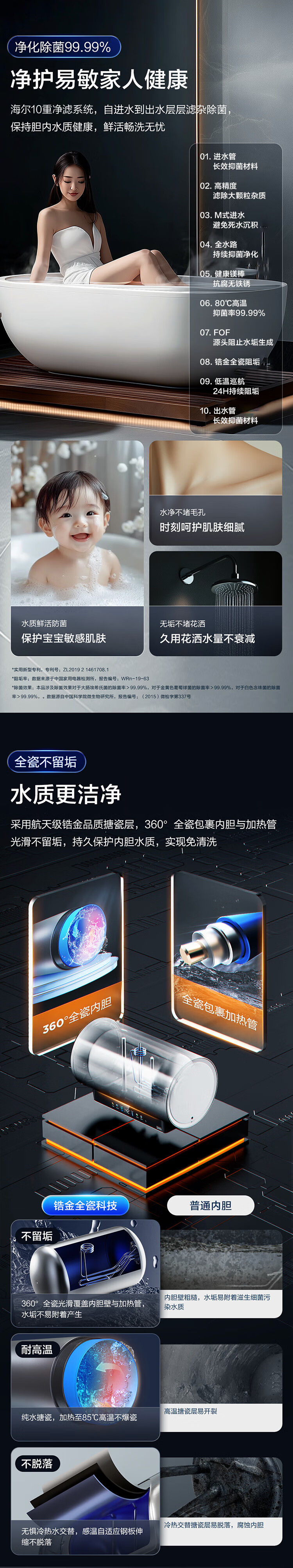 家用电器  > 厨卫大电  > 电热水器  >  海尔/Haier  >  海尔(Haier)电热水器60升 小红花JH9 无垢鲜活水净肤洗 JH7升级款 3D巨能洗 3300W瞬热家用储水式 EC6005H-JH9AU1/台