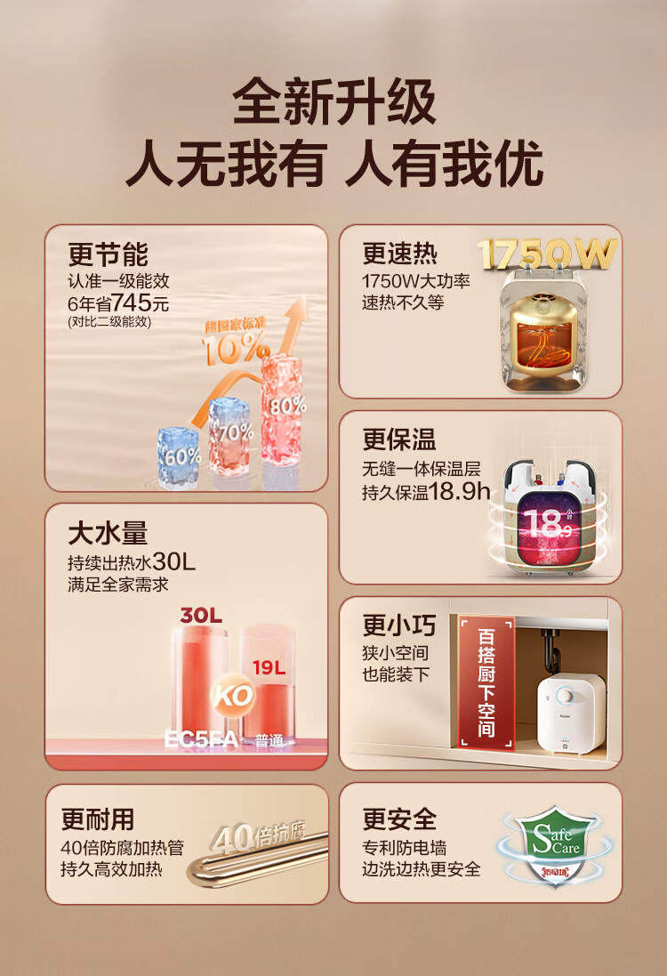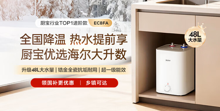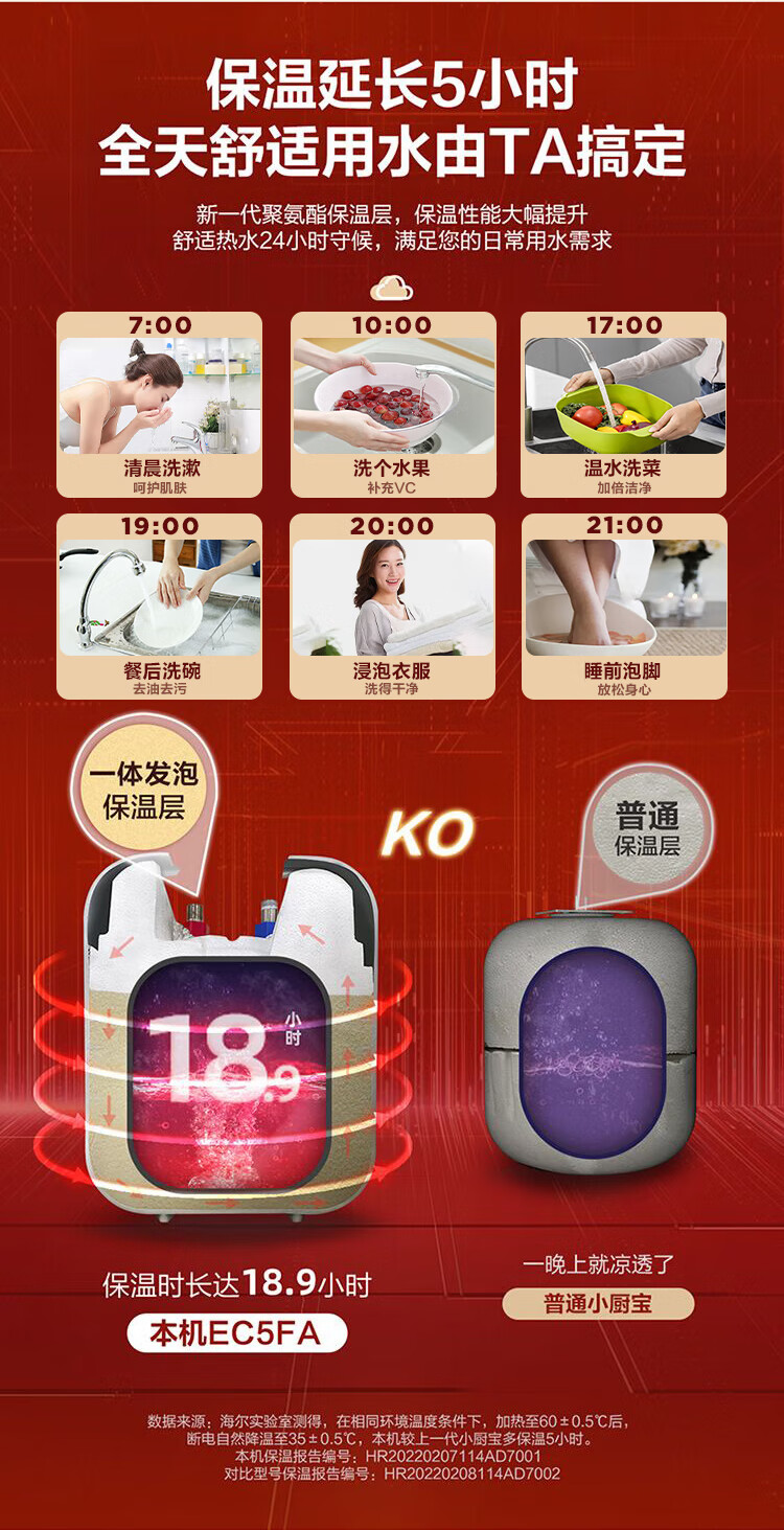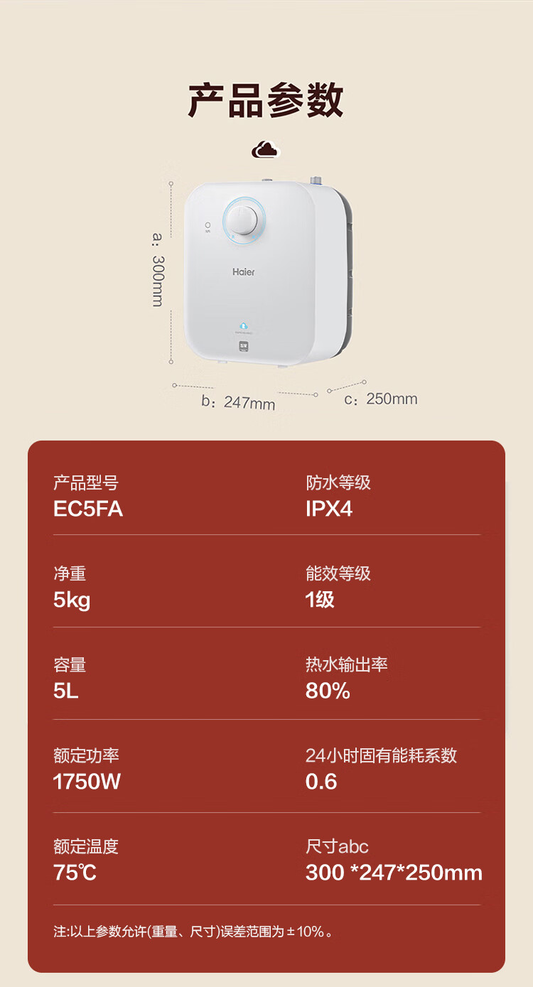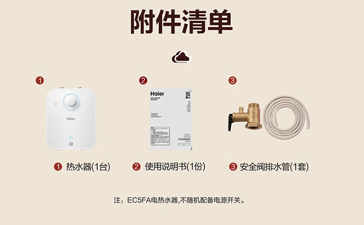 • 商品名称:海尔(Haier)5升小厨宝电热水器EC5FA 一级能效京东自营 1750W速热节能 家用厨房台下小型储水式热水宝 EC5FA/台