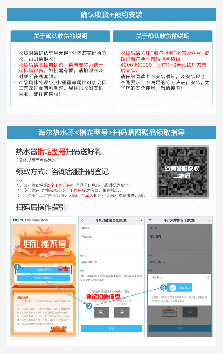 包装清单: 电热水器*1台、安全阀排水管*1套、说明书*1本