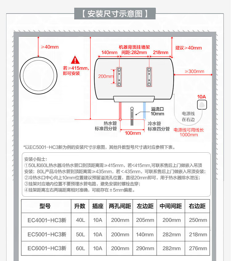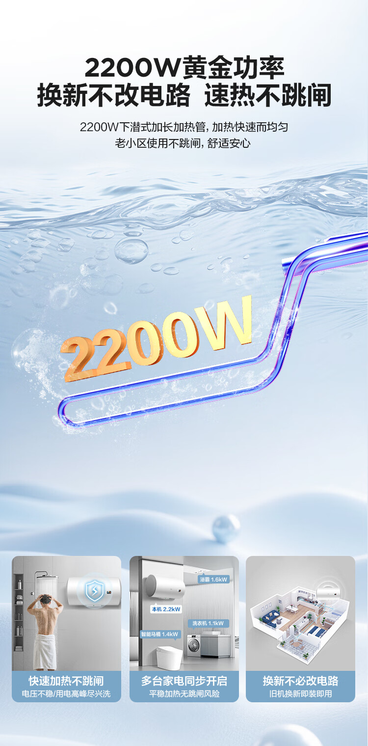 • 商品名称:海尔(Haier)换新补贴电热水器40升 HC3新 金刚搪瓷胆 租房优选5.5倍大水量 2200W速热家用洗澡储水式 上门安装 EC4001-HC3新/台