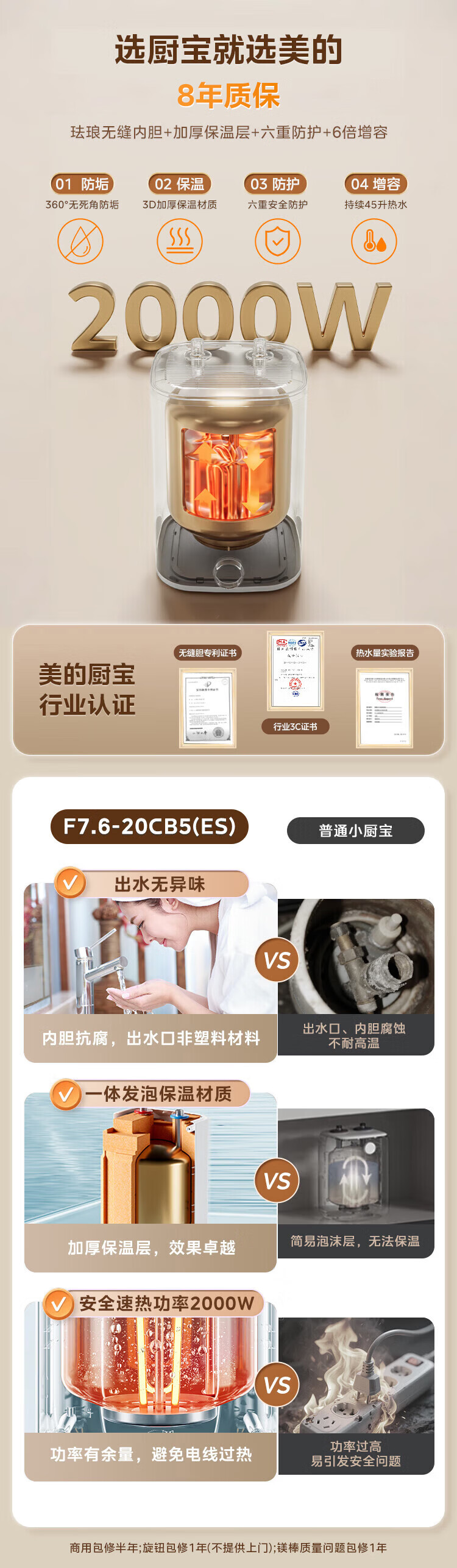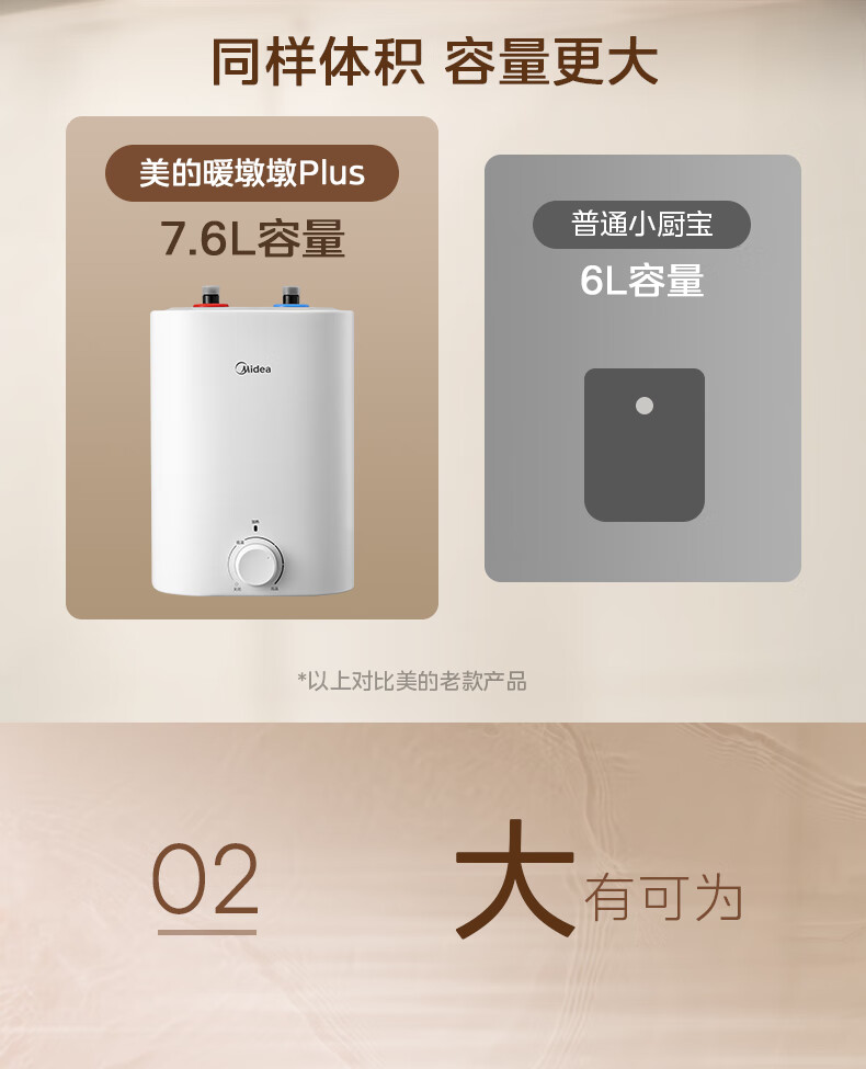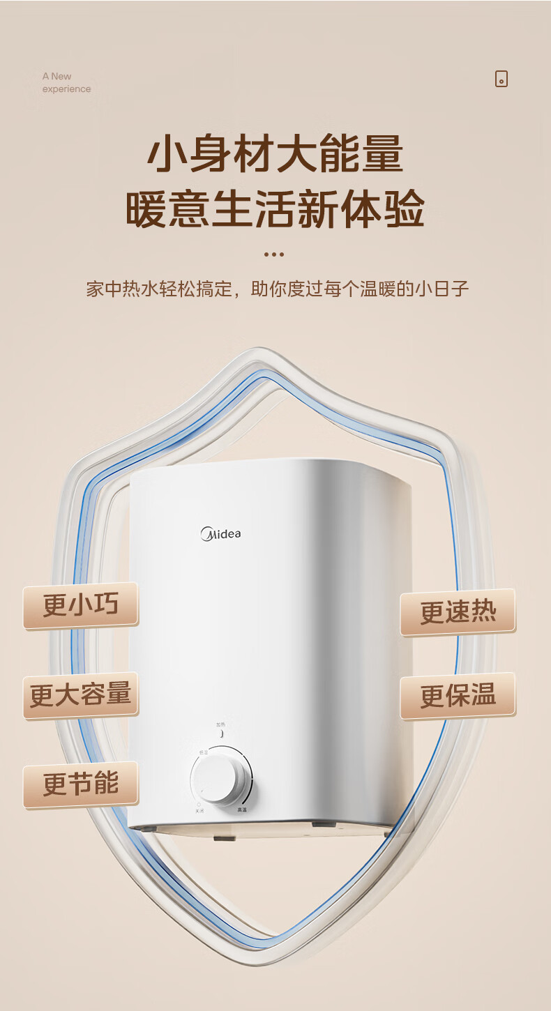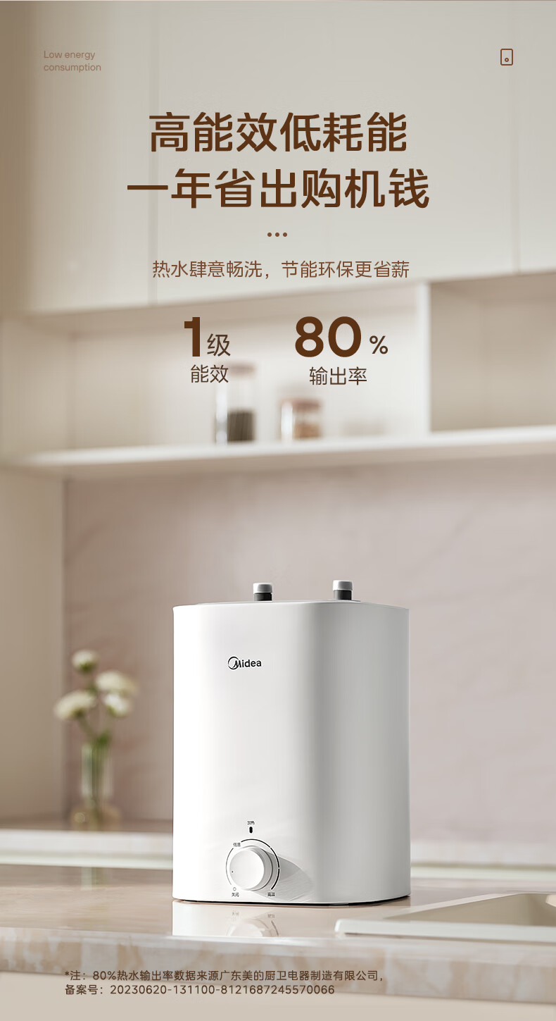 • 商品名称:美的(Midea)7.6升储水式小厨宝台下电热水器家用45升一级能效京东自营2000W厨房热水宝F7.6-20CB5(ES) F7.6-20CB5(ES)/台