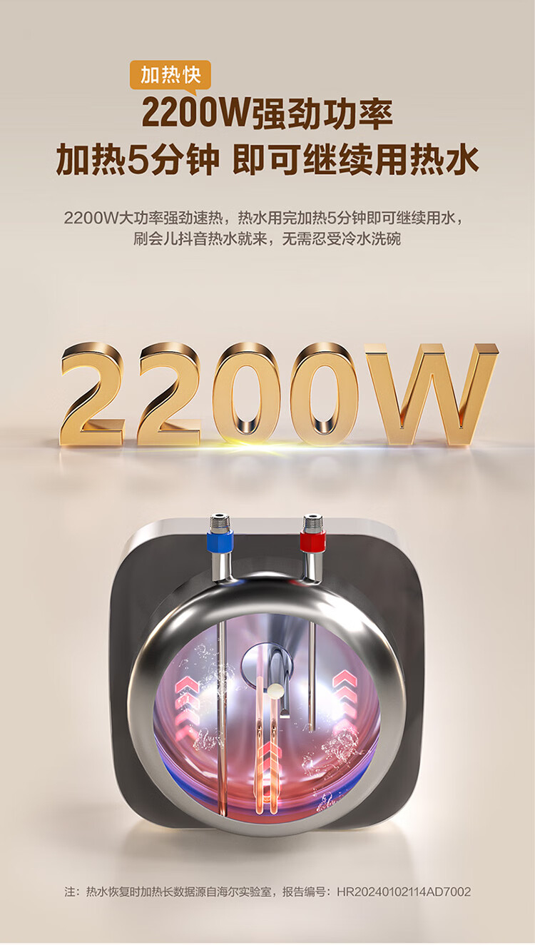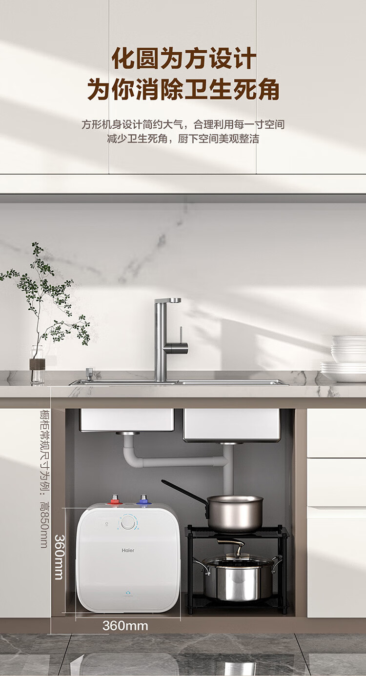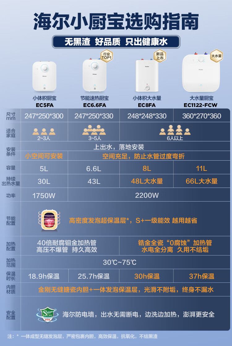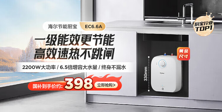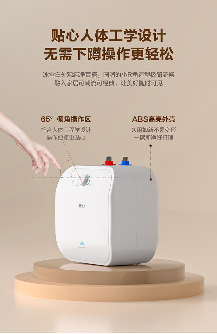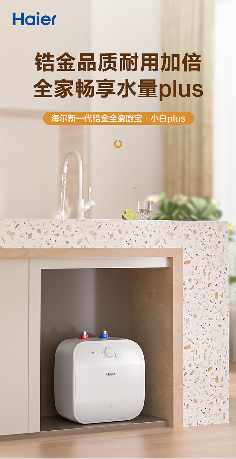 • 商品名称:海尔(Haier)11升小厨宝电热水器FCW 金刚无缝胆 一级能效节能2200W速热储水式家用厨房台下小型热水宝 EC1122-FCW/台