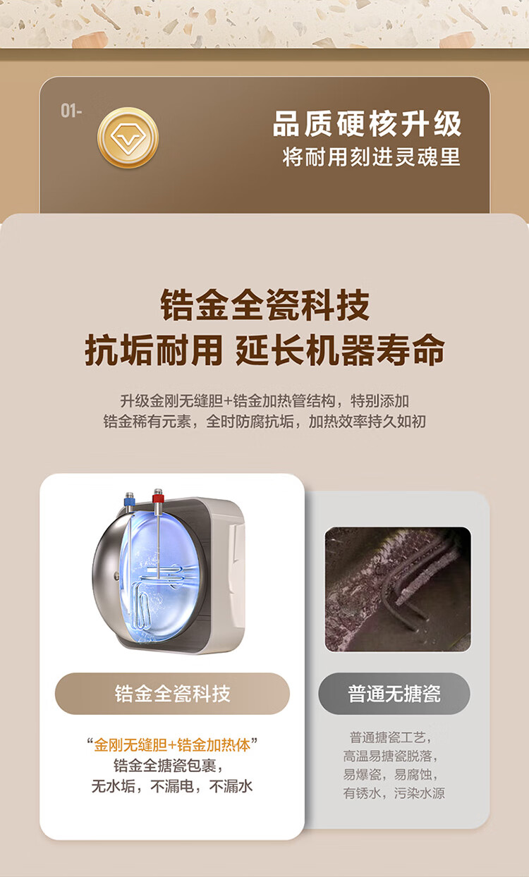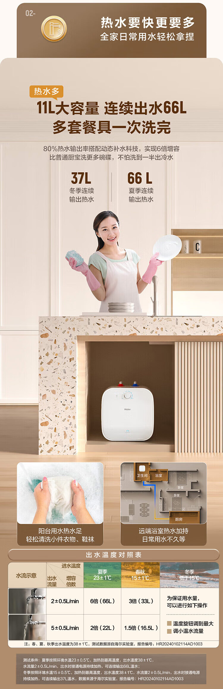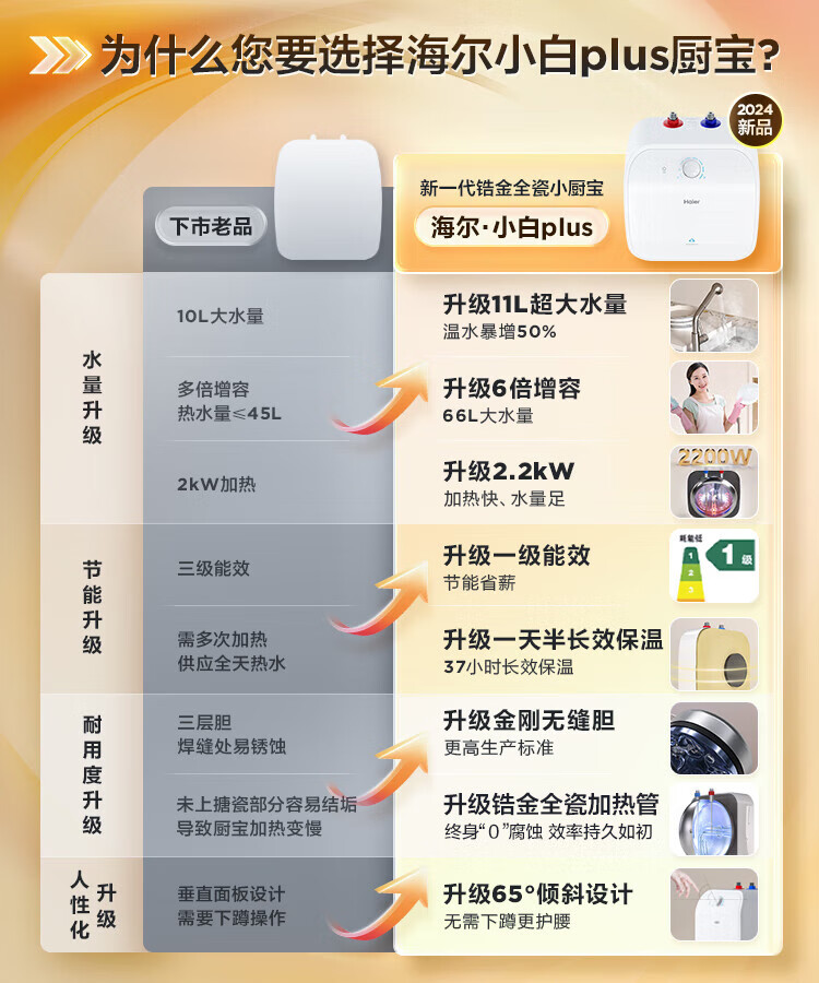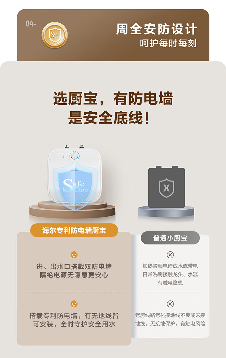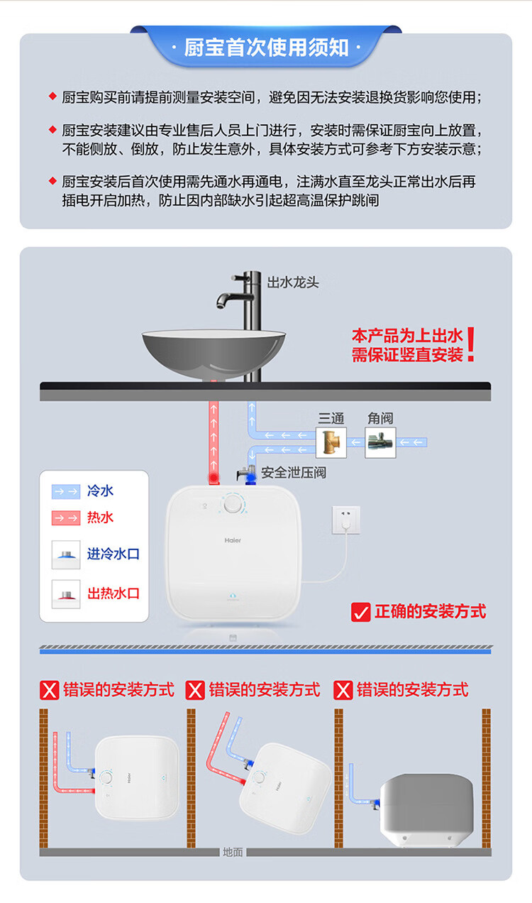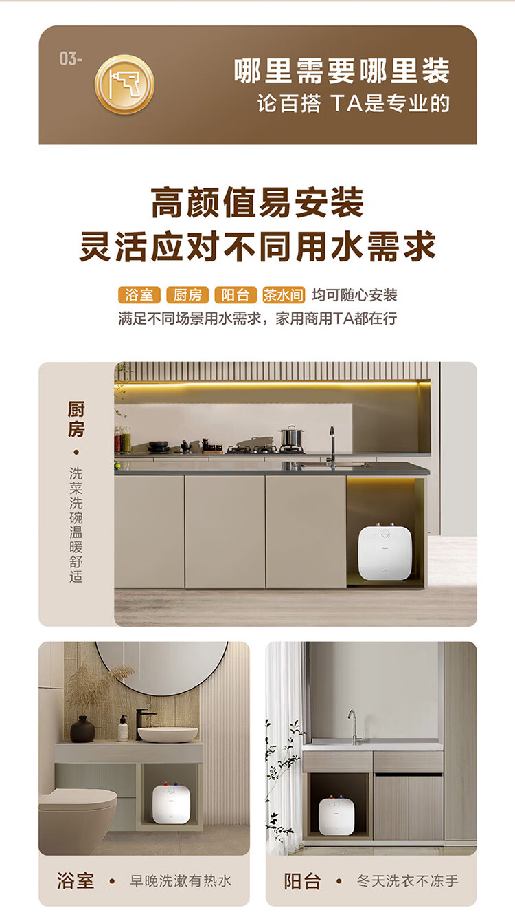 • 商品名称:海尔(Haier)11升小厨宝电热水器FCW 金刚无缝胆 一级能效节能2200W速热储水式家用厨房台下小型热水宝 EC1122-FCW/台