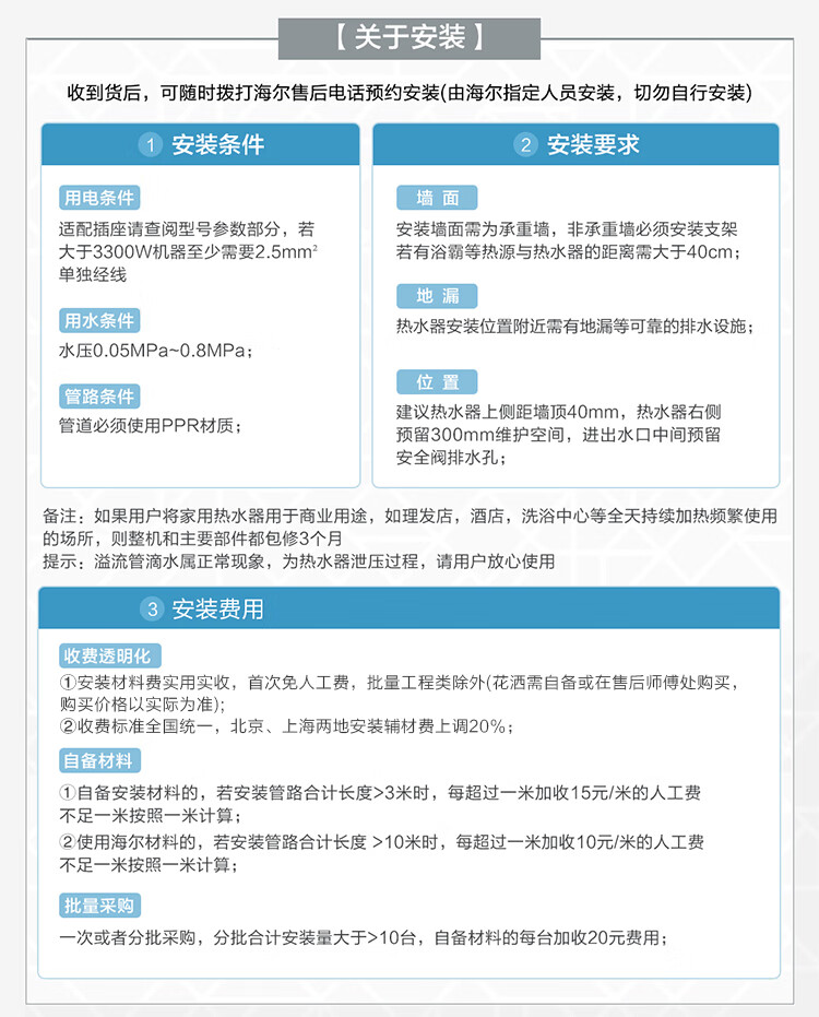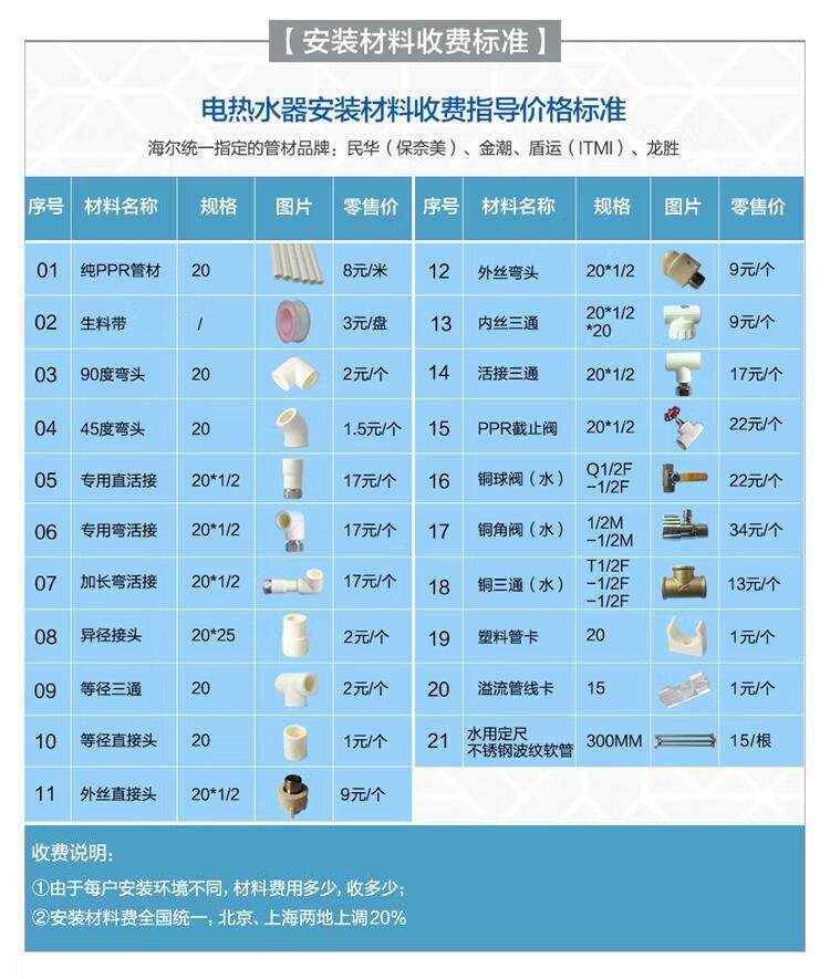 包装清单: 电热水器1台、安全阀、排水管(套)、说明书(本)