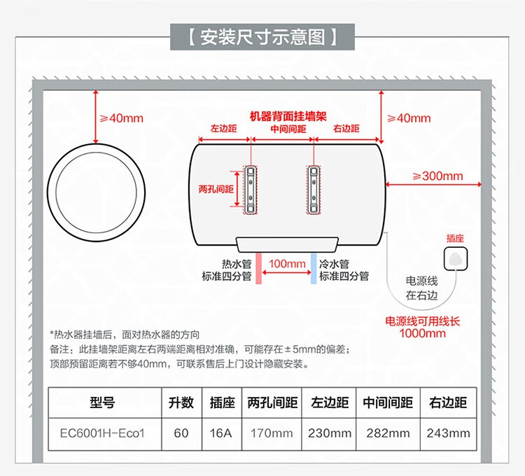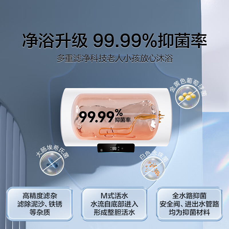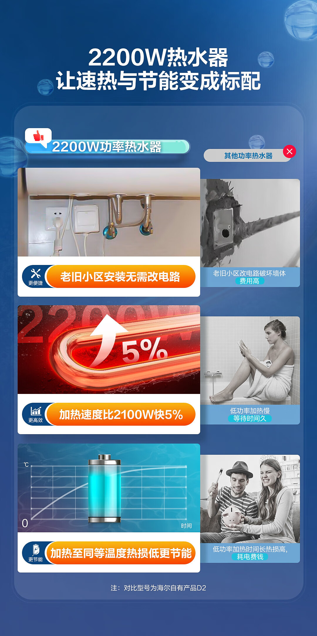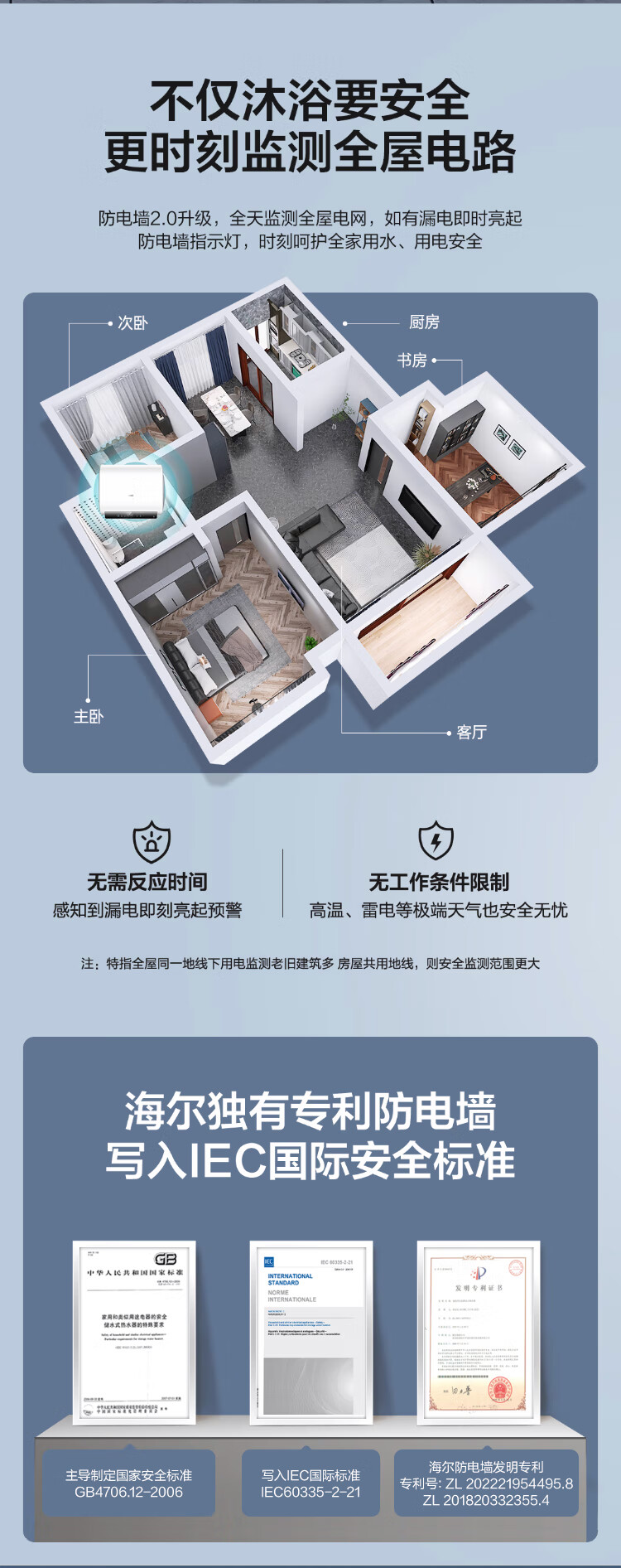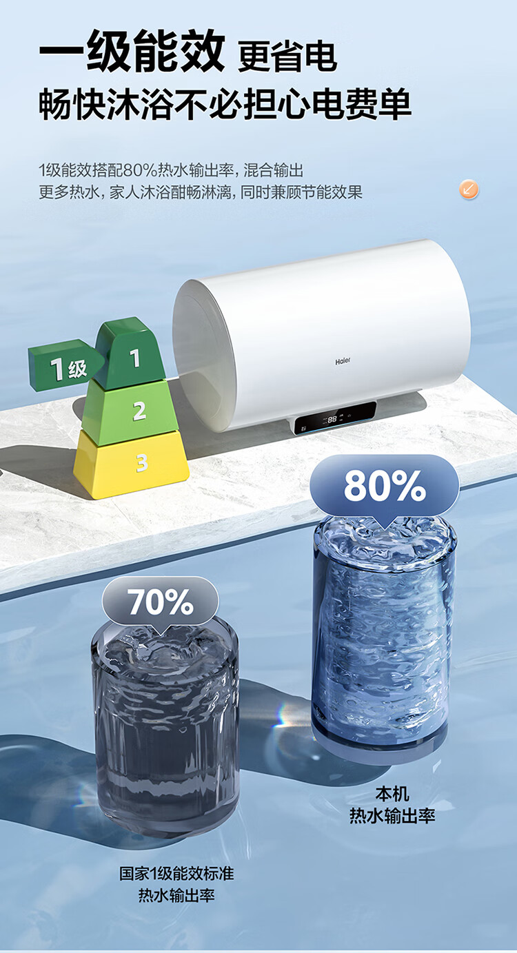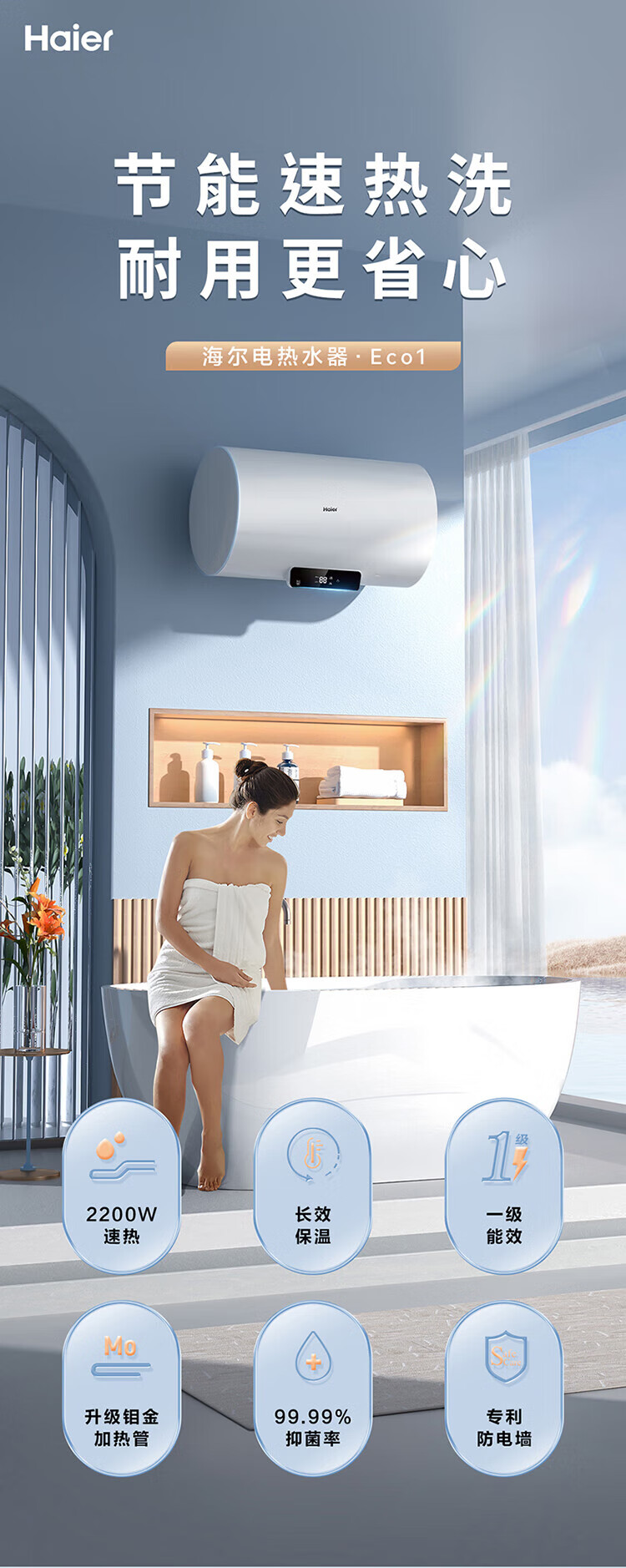 • 商品名称:海尔(Haier)电热水器60升 Eco1 金刚搪瓷胆 一级能效节能 2200W高效加热长效保温抑菌家用储水式 EC6001H-Eco1/台