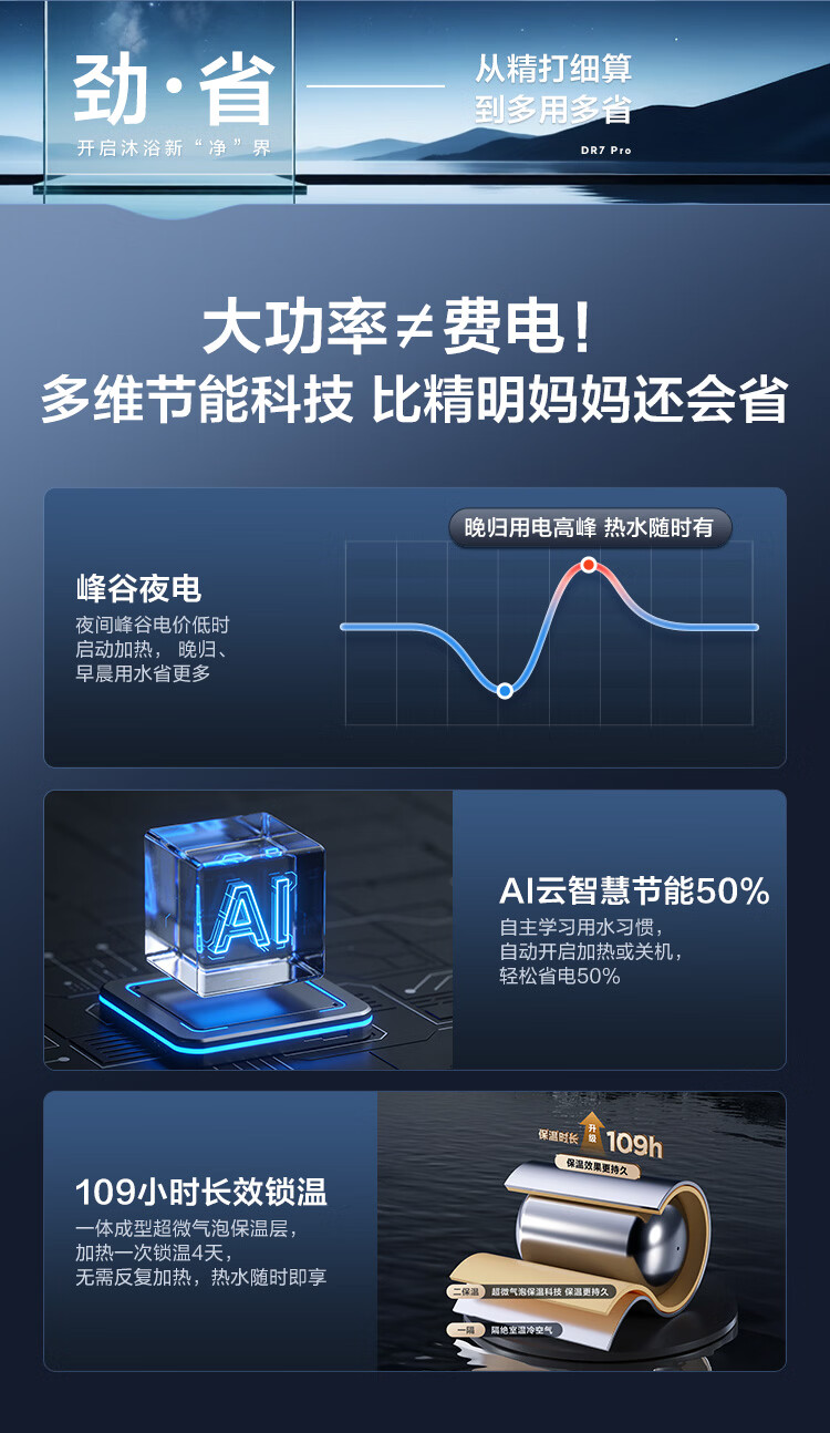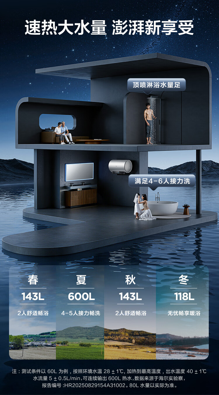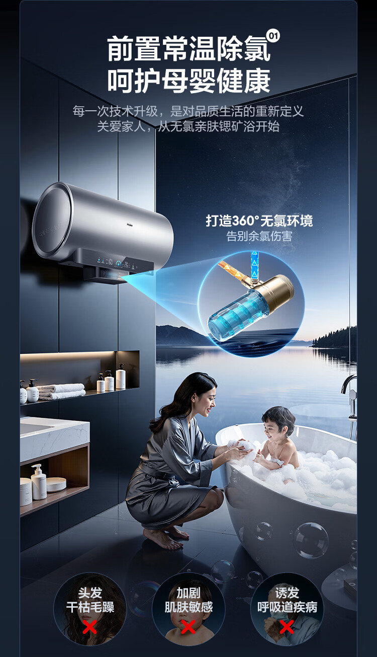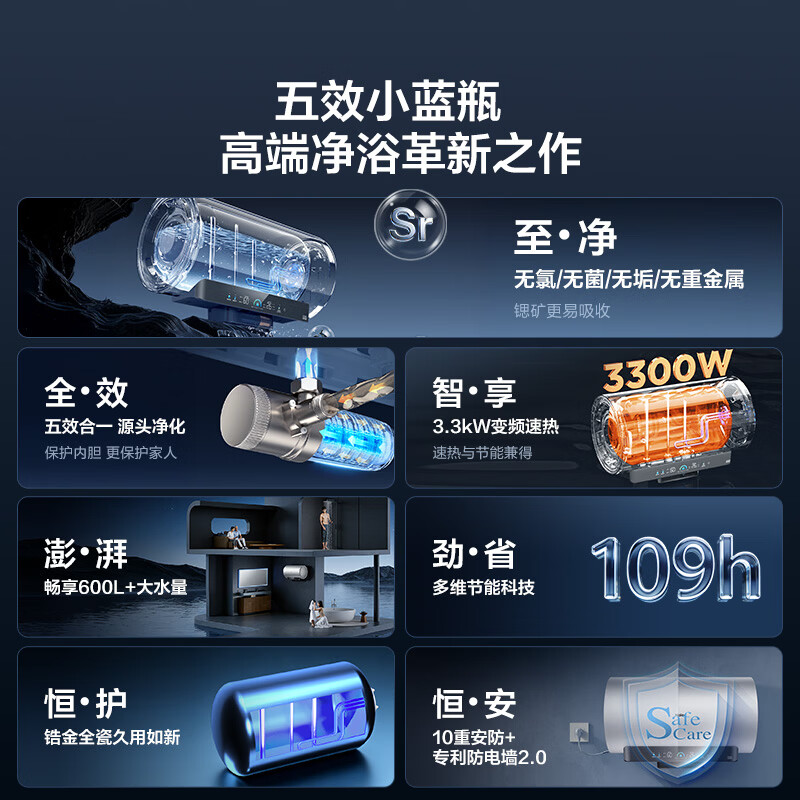 • 商品名称:海尔(Haier)麦浪套系电热水器 80升DR7 富锶小蓝瓶净肤洗 3300W变频一级能效节能 速热大水量家用 EC8002H-DR7AU1/台