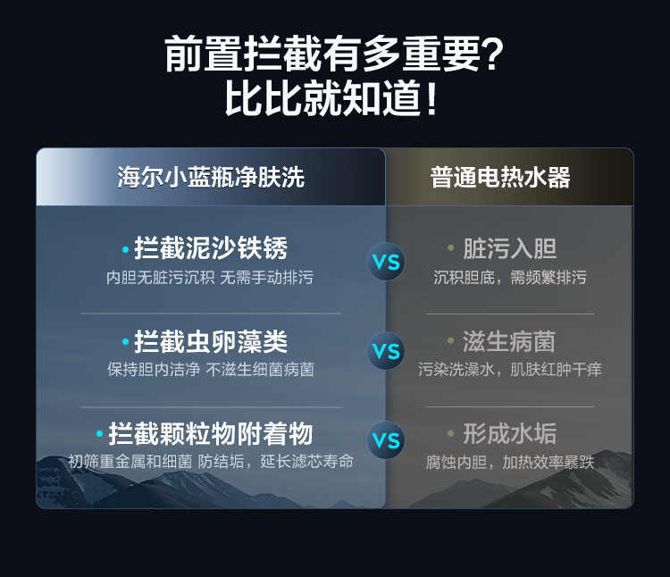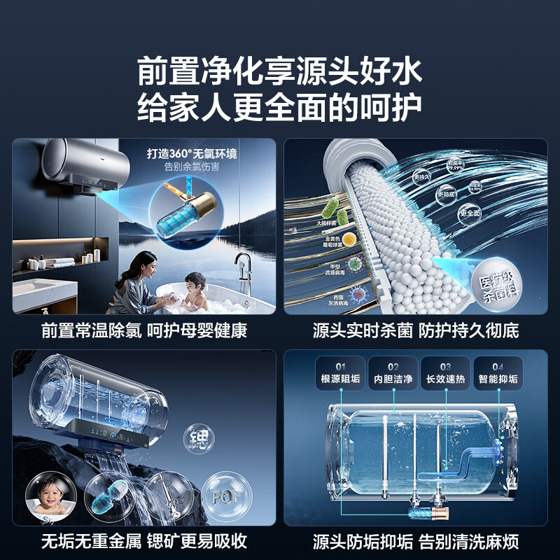 家用电器  > 厨卫大电  > 电热水器  >  海尔/Haier  >  海尔(Haier)麦浪套系电热水器 80升DR7 富锶小蓝瓶净肤洗 3300W变频一级能效节能 速热大水量家用 EC8002H-DR7AU1/台