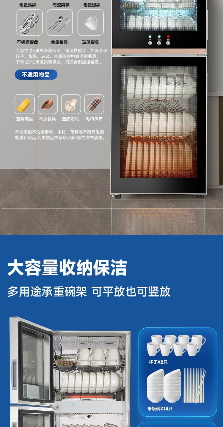奥克斯(AUX)消毒柜家用立式大容量300L高温臭氧碗筷收纳柜餐具母婴儿奶瓶双门二星级紫外线消毒碗柜ZTP338-A02 ZTP338-A02/台
