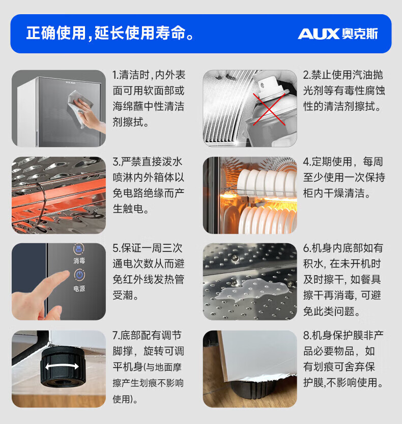 • 商品名称:奥克斯(AUX)消毒柜家用立式大容量300L高温臭氧碗筷收纳柜餐具母婴儿奶瓶双门二星级紫外线消毒碗柜ZTP338-A02 ZTP338-A02/台