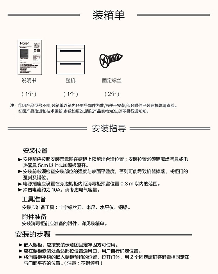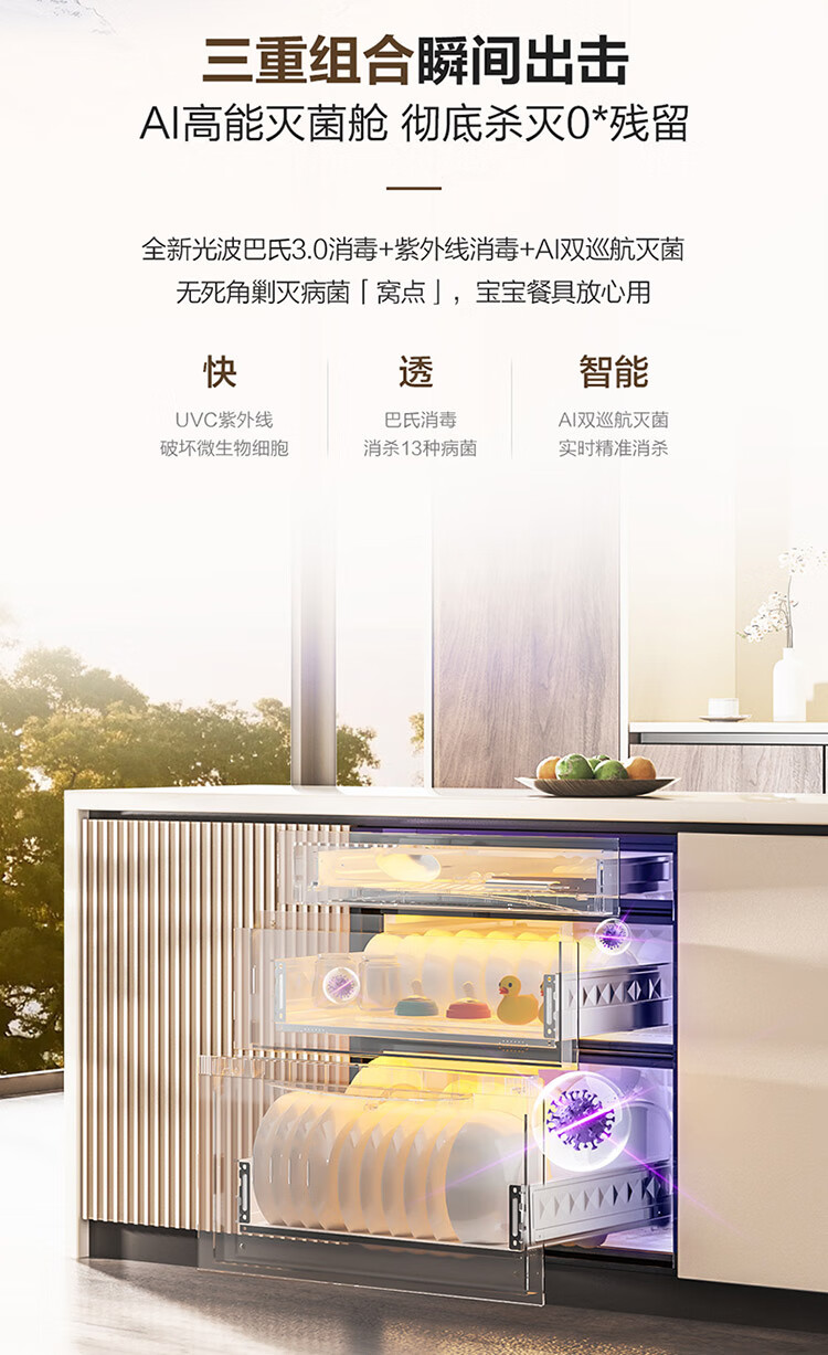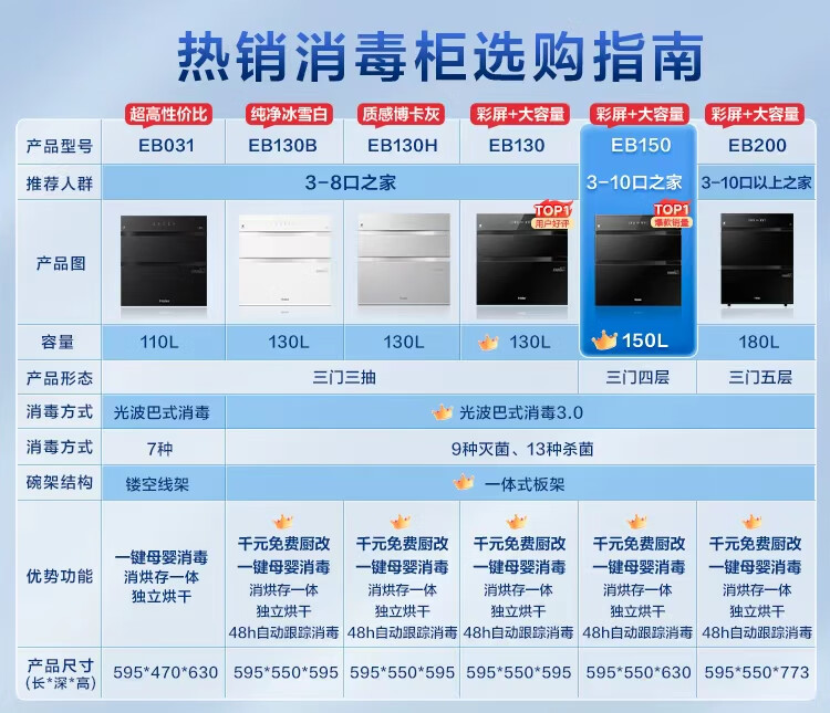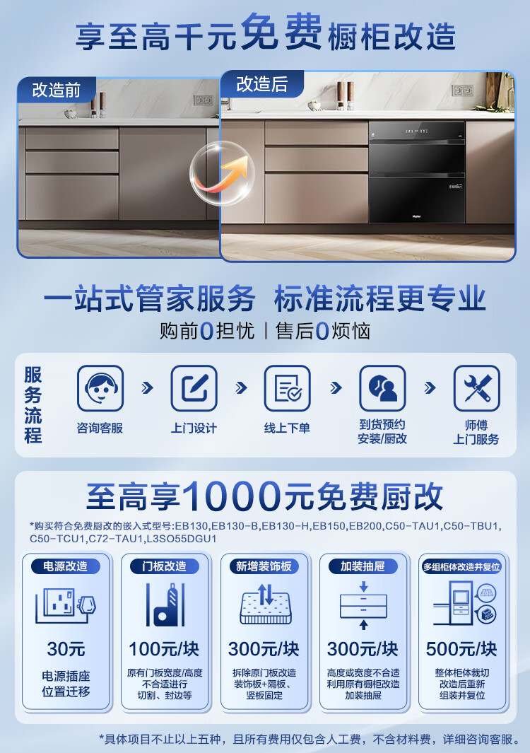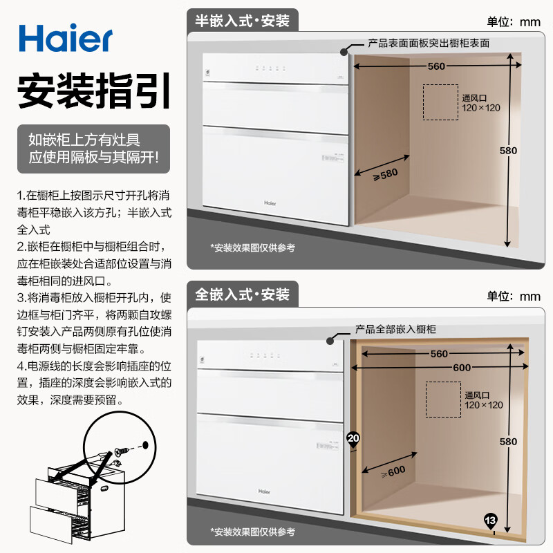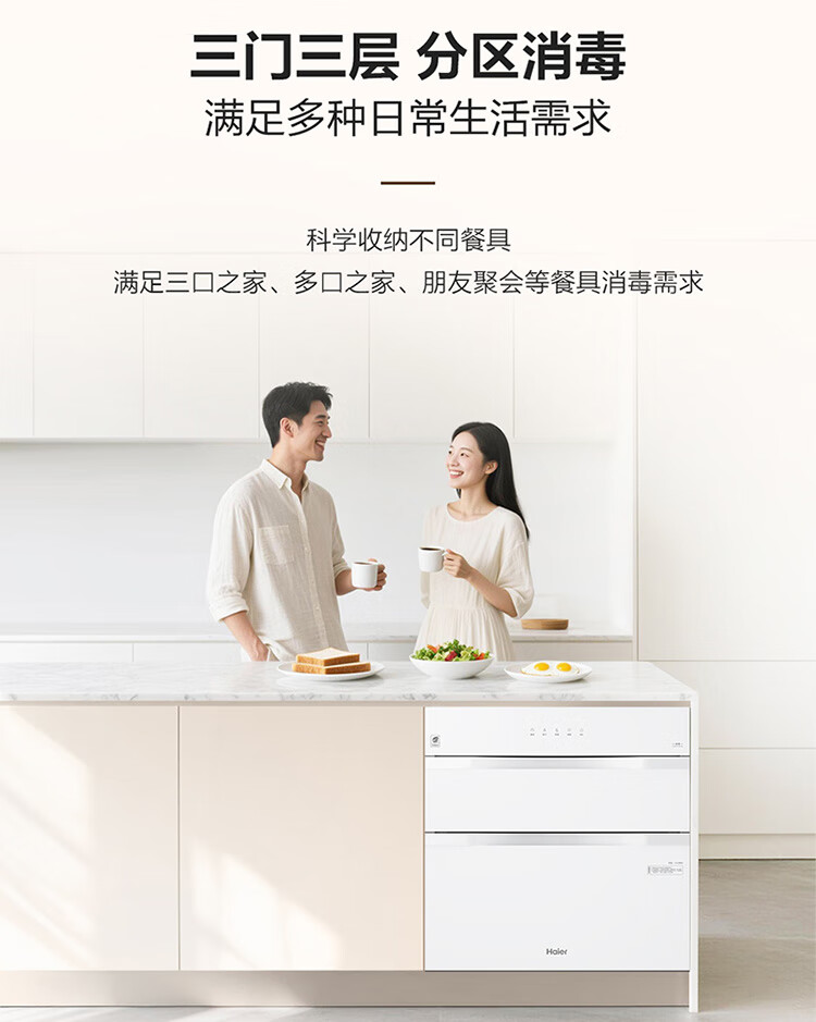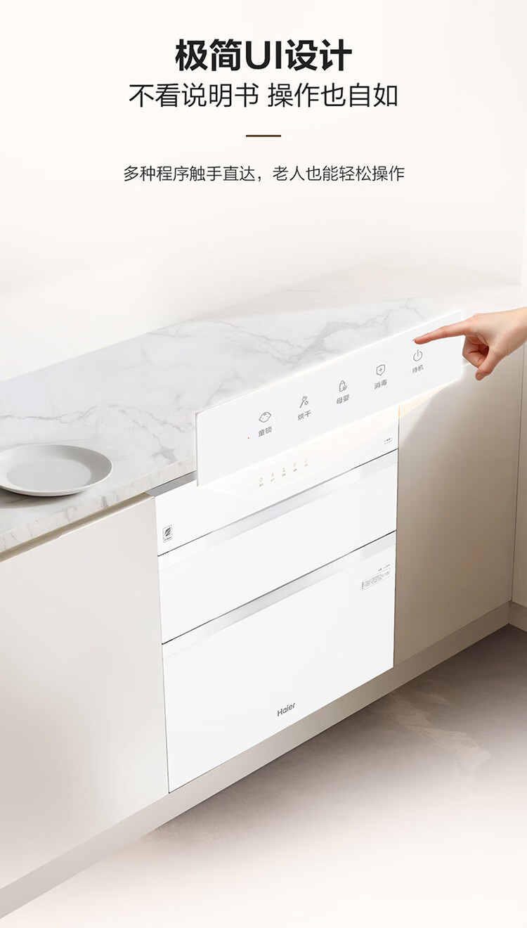 • 商品名称:海尔(Haier)130L【小红花厨电-绽放版】嵌入式消毒柜 灭菌舱系列大容量消毒碗柜三门三抽 白色母婴级 EB130B ZQD130F-EB130B/台