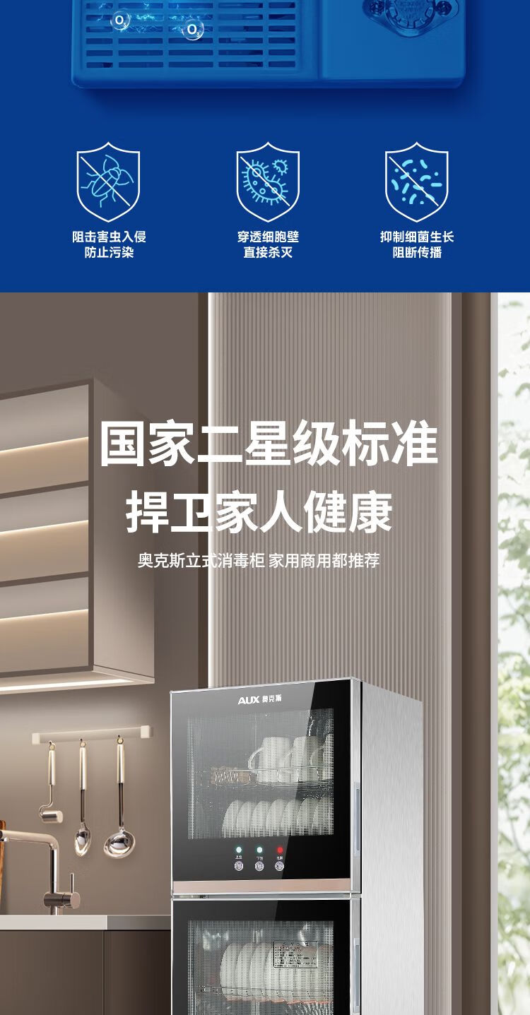家用电器  > 厨卫大电  > 消毒柜  >  奥克斯/AUX  >  奥克斯(AUX)消毒柜家用立式大容量150L高温臭氧碗筷收纳柜餐具母婴儿奶瓶双门二星级紫外线消毒碗柜ZTP198-A02 ZTP198-A02/台