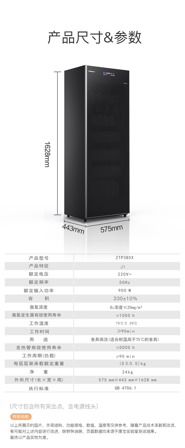 • 商品名称:康宝 Canbo ZTP380X-J1保洁柜 立式消毒柜 厨房商用餐具 立式食具臭氧保洁柜 ZTP380X-J1/台