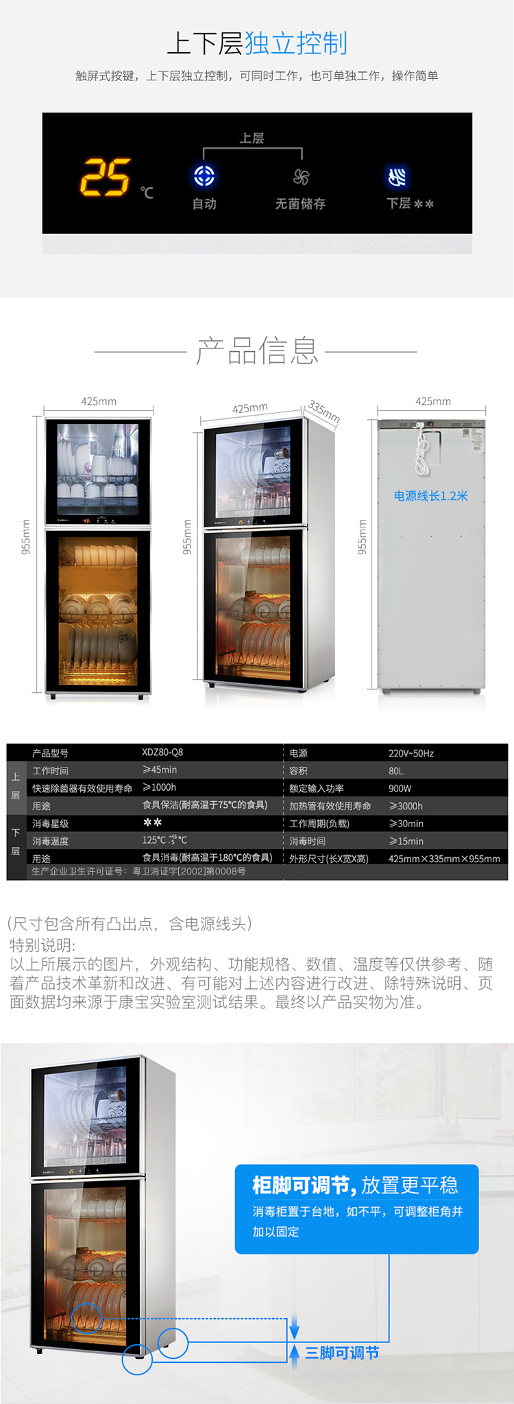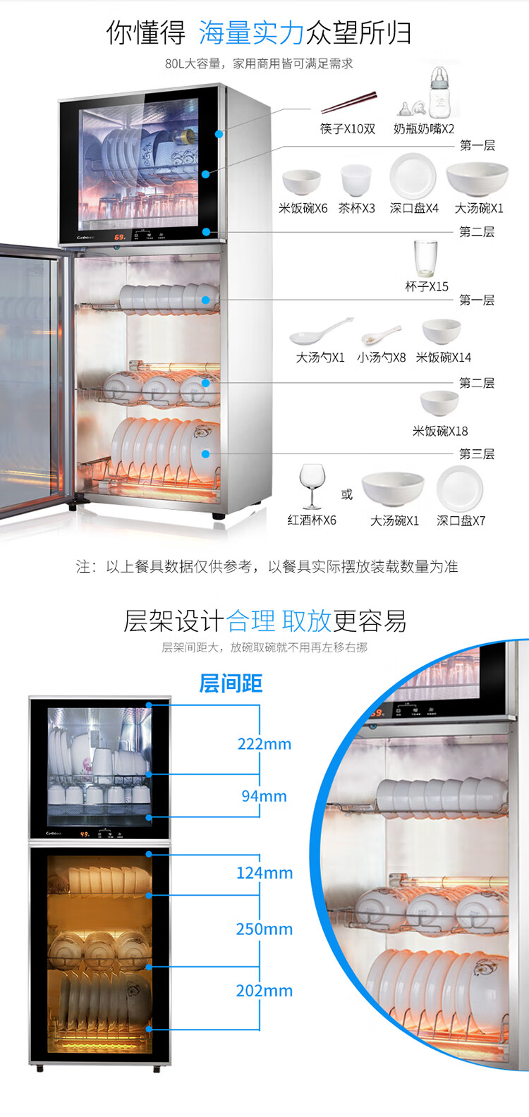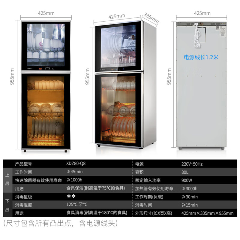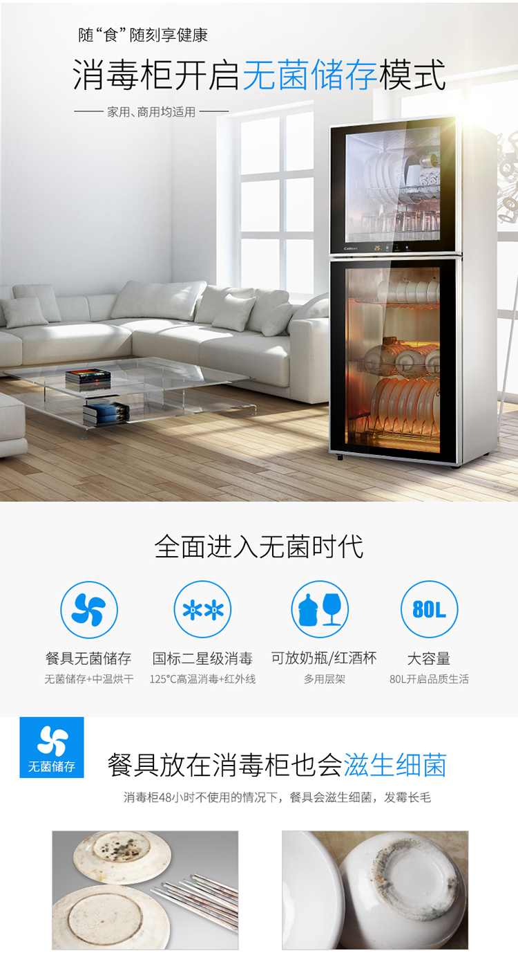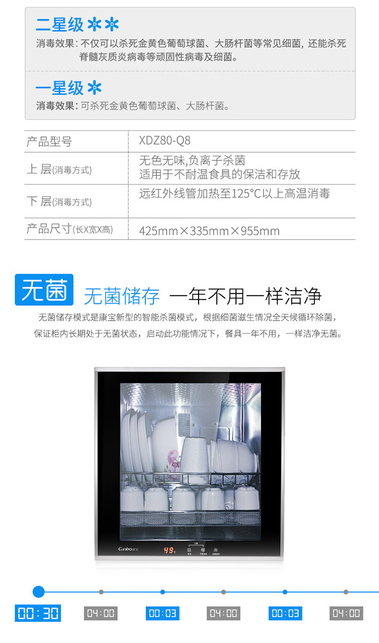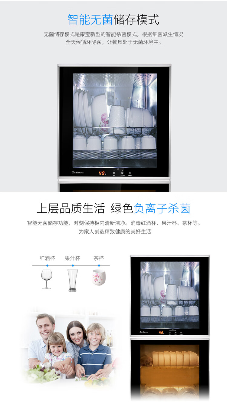 • 商品名称:康宝(Canbo)消毒柜 家用 立式 小型消毒柜 二星级高温 厨房碗筷餐具消毒碗柜 双门台式XDZ80-Q8 XDZ80-Q8/台
