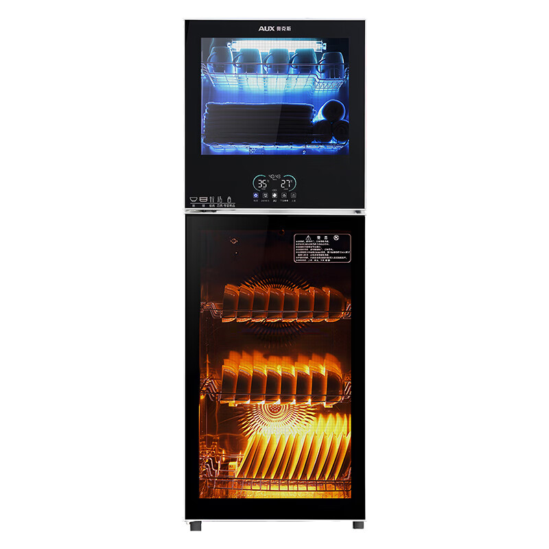 奥克斯(AUX)消毒柜家用180L不锈钢立台式大容量奶瓶碗筷烘干高温上下分层热风消毒碗柜紫外线AI款ZTP288-U8 ZTP288-U8/台