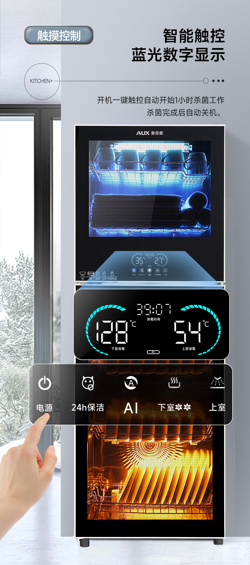 • 商品名称:奥克斯(AUX)消毒柜家用180L不锈钢立台式大容量奶瓶碗筷烘干高温上下分层热风消毒碗柜紫外线AI款ZTP288-U8 ZTP288-U8/台