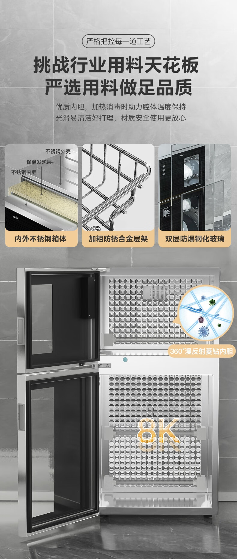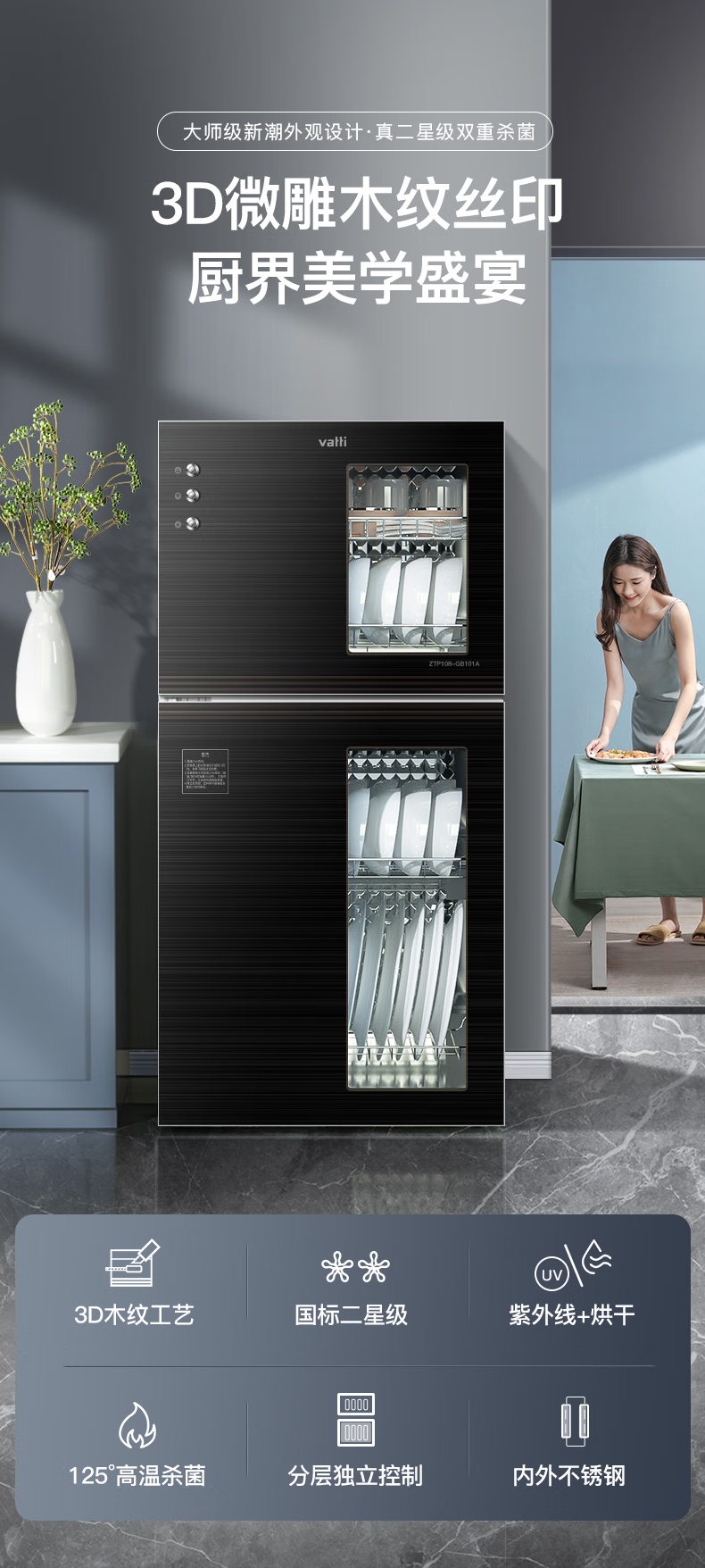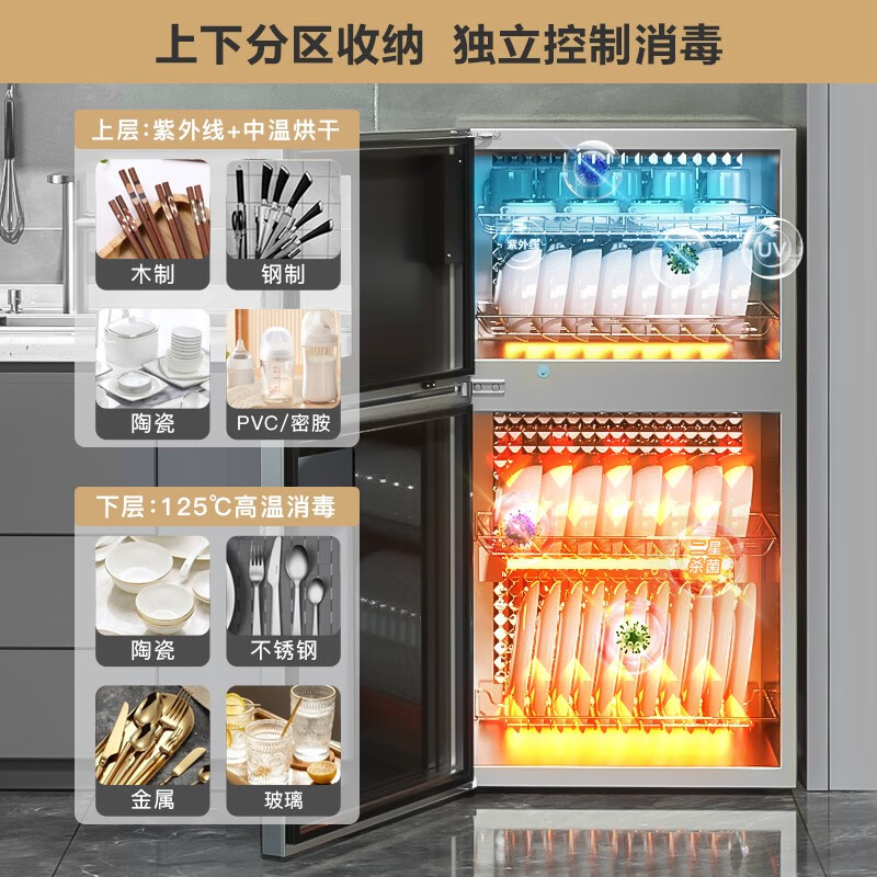 • 商品名称:华帝(VATTI)消毒柜立式家用二星级紫外线高温烘干婴儿奶瓶厨房餐具碗筷消毒碗柜 ZTP138-GB101A ZTP138-GB101A/台