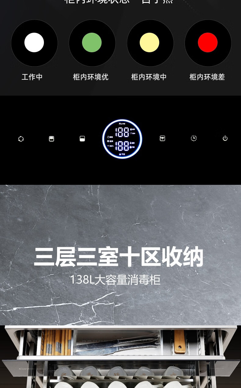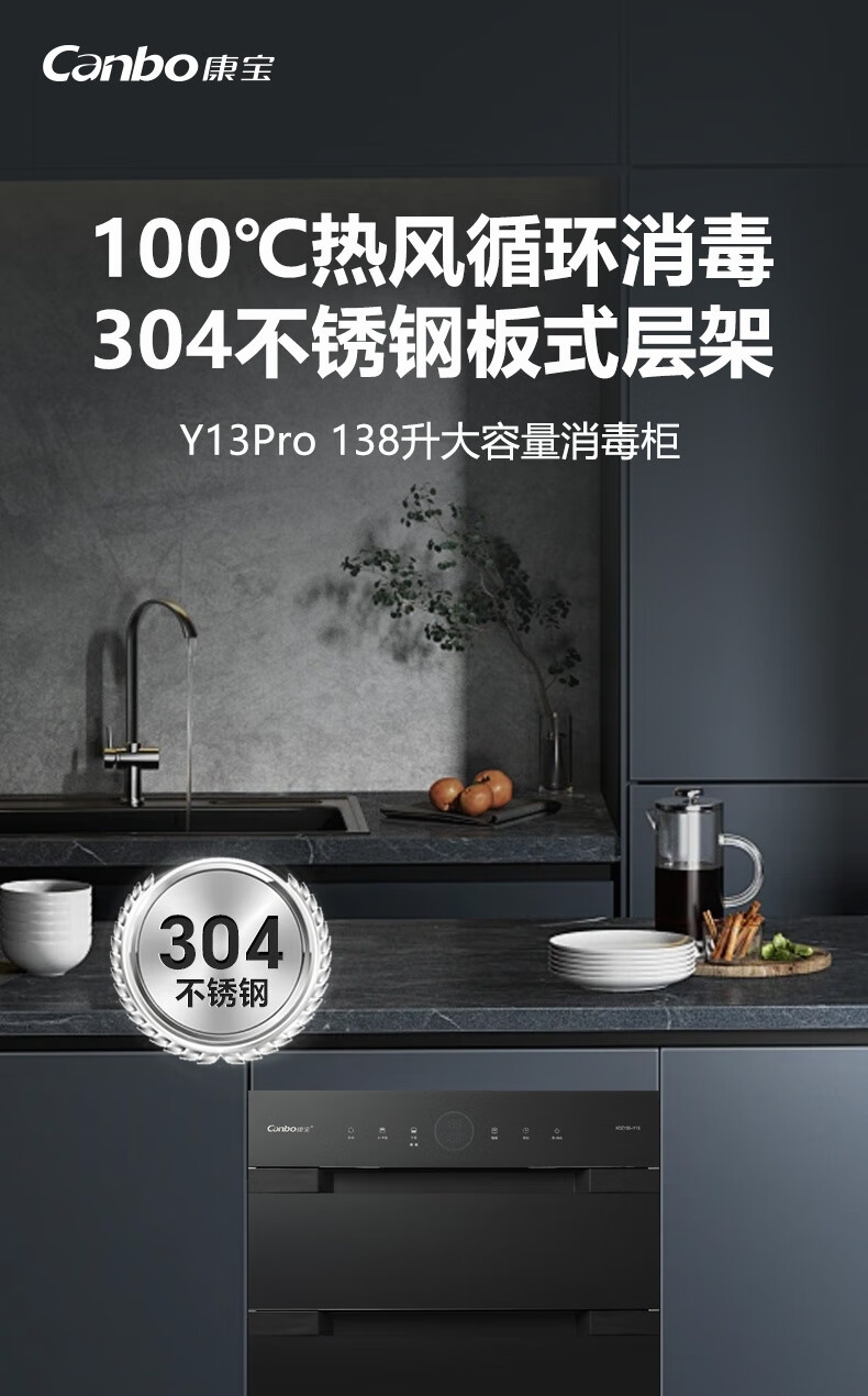 • 商品名称:康宝(Canbo)XDZ138-Y13pro 嵌入式138L 外三层304不锈钢 热风循环 消毒碗柜 一台 XDZ138-Y13pro/台