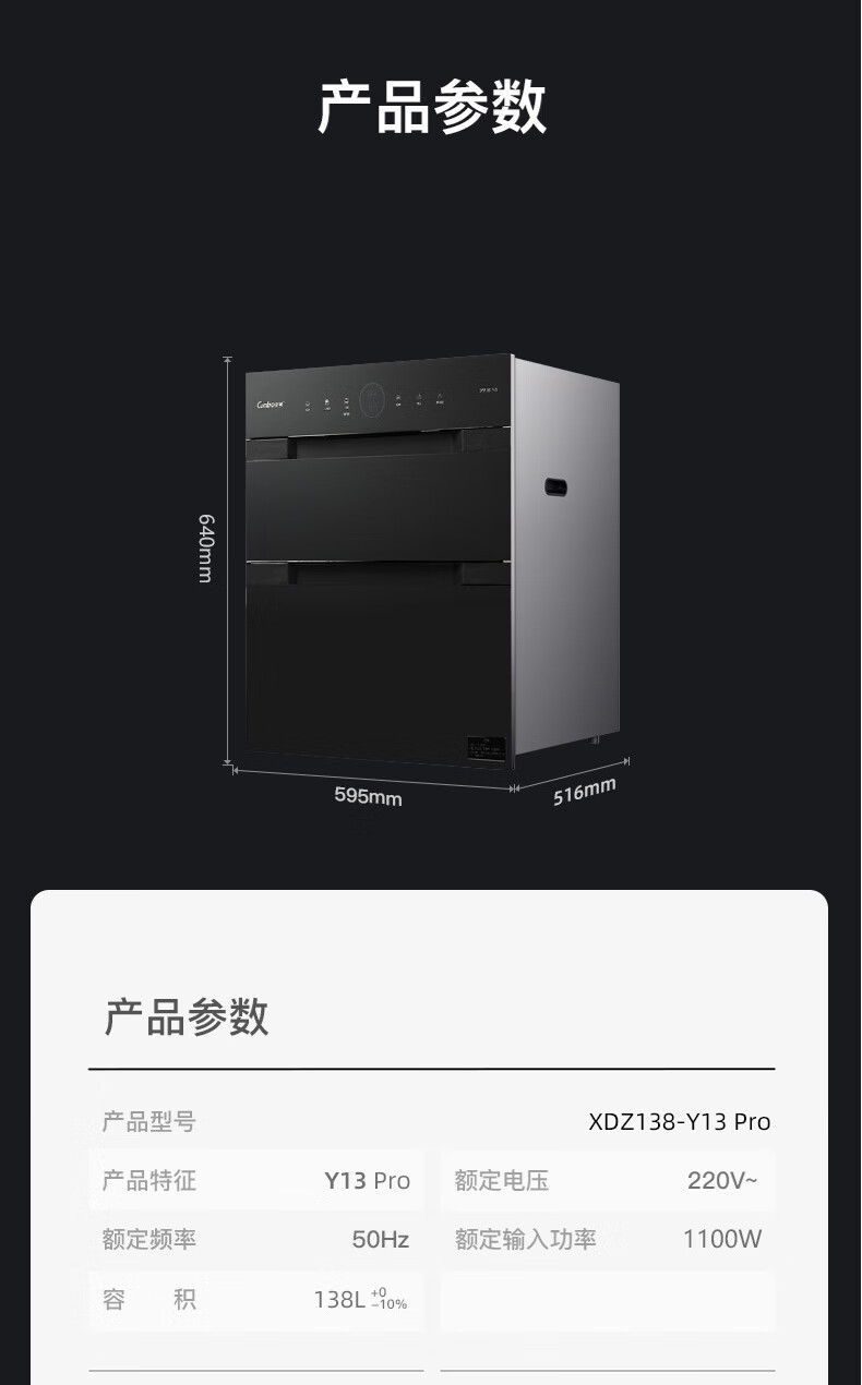 商品名称: 康宝(Canbo)XDZ138-Y13pro 嵌入式138L 外三层304不锈钢 热风循环 消毒碗柜 一台 XDZ138-Y13pro/台