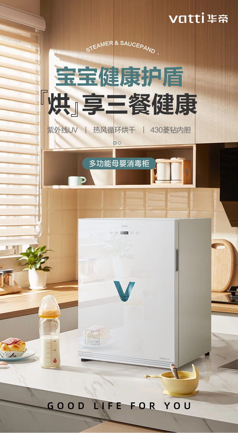 家用电器  > 厨卫大电  > 消毒柜  >  华帝  >  华帝(VATTI)消毒柜家用小型台式紫外线热风烘干厨房桌面餐具碗筷茶杯消毒碗柜二星级 ZTP58-V3 ZTP58-V3/台