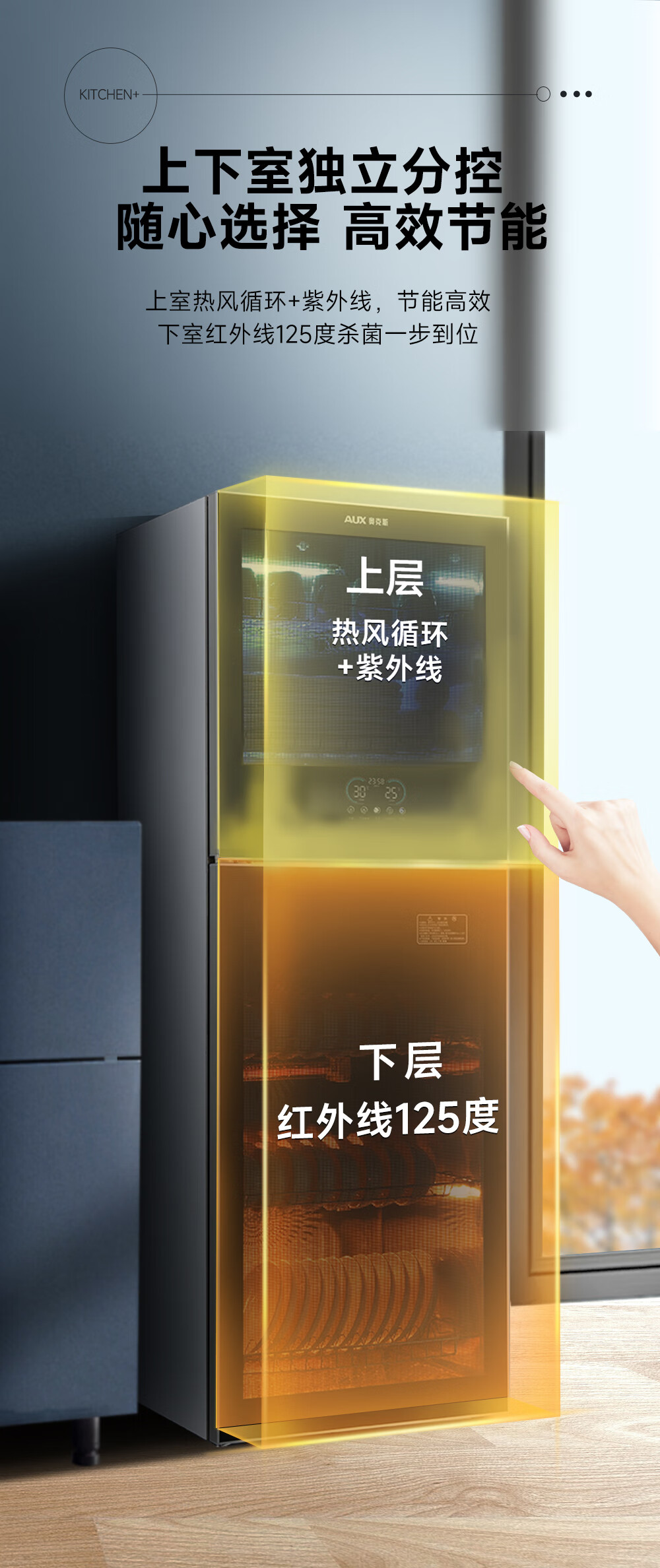 • 商品名称:奥克斯(AUX)消毒柜家用立式大容量80L 高温热风碗筷收纳柜餐具母婴儿奶瓶双门二星级紫外线消毒碗柜 ZTP88-U8 ZTP88-U8/台