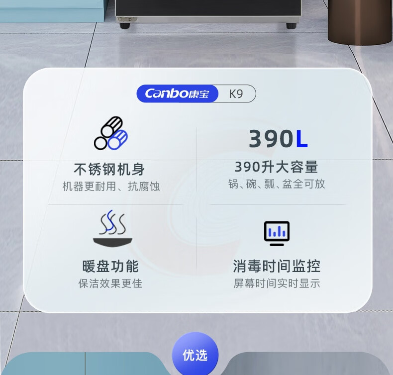 家用电器  > 厨卫大电  > 消毒柜  >  康宝/Canbo  >  康宝XDZ390-K9 立式390L(30-50人) 家用商用二星级高温 消毒碗柜 一台 XDZ390-K9/台
