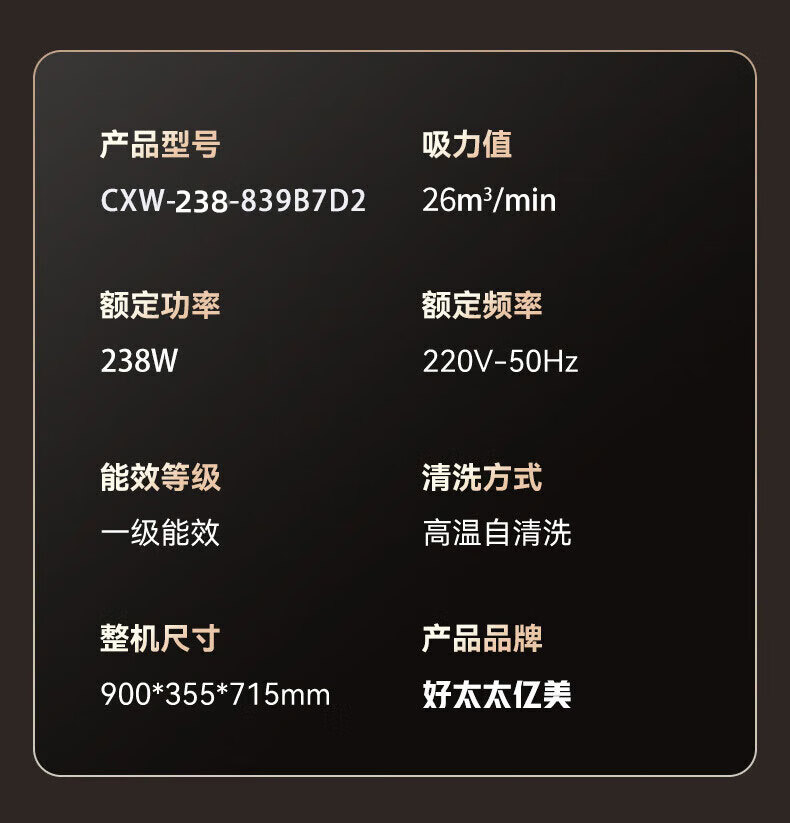 • 商品名称:好太太亿美油烟机家用大吸力顶侧双吸大风量厨房抽油烟机自动清洗7字型吸油烟机CXW-238-839B7D2 CXW-238-839B7D2/台