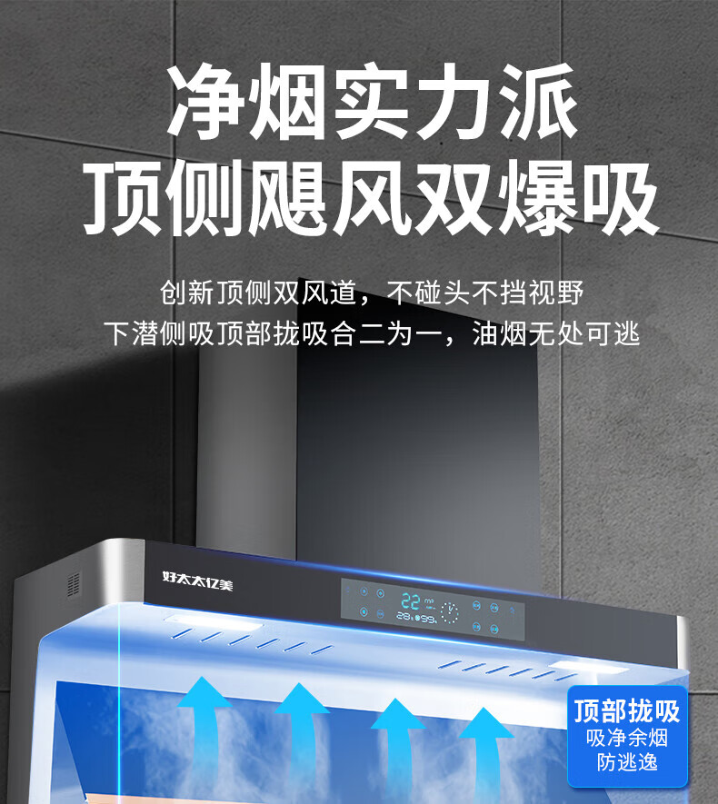 商品名称: 好太太亿美油烟机家用顶侧双吸抽油烟机厨房吸油烟机自动开合自动清洗大吸力大风量CXW-298-839B7D5 CXW-298-839B7D5/台