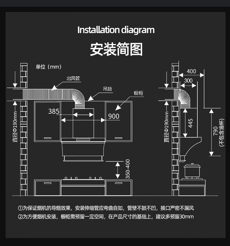 包装清单: 抽油烟机x1;出风口x1;烟管x1;挂板x1;螺丝包