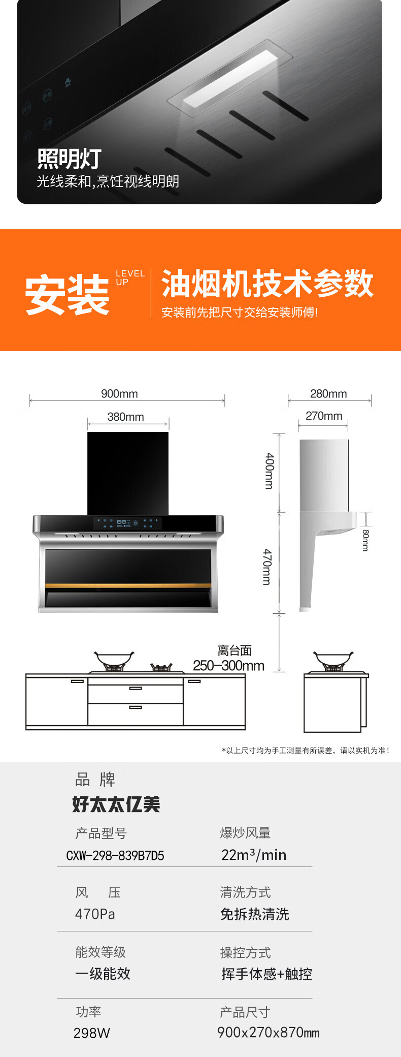 • 商品名称:好太太亿美油烟机家用顶侧双吸抽油烟机厨房吸油烟机自动开合自动清洗大吸力大风量CXW-298-839B7D5 CXW-298-839B7D5/台