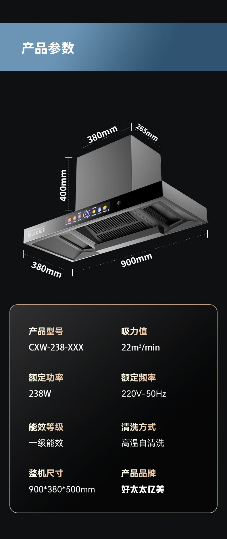 • 商品名称:好太太亿美油烟机家用欧式顶吸式大风量T型机厨房吸油烟机900宽CXW-238-836A CXW-238-836A/台