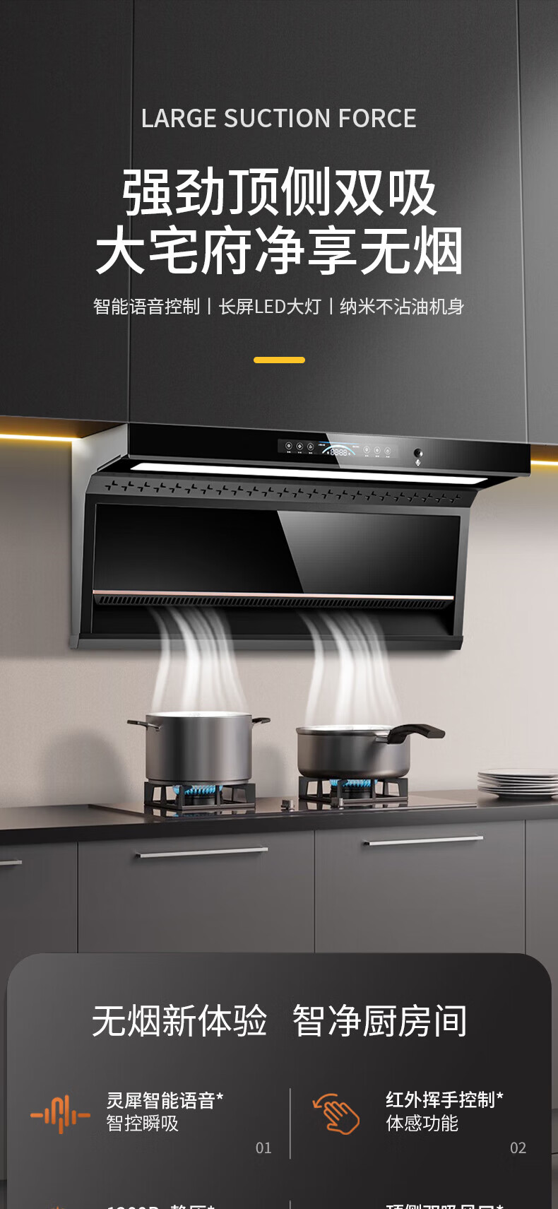 家用电器  > 厨卫大电  > 油烟机  >  守爱好太太  >  守爱好太太油烟机 顶侧双吸抽油烟机7字型 28立方大吸力 挥手体感 智能语音控制 免拆自动热清洗CXW-328-A2 CXW-328-A2/台