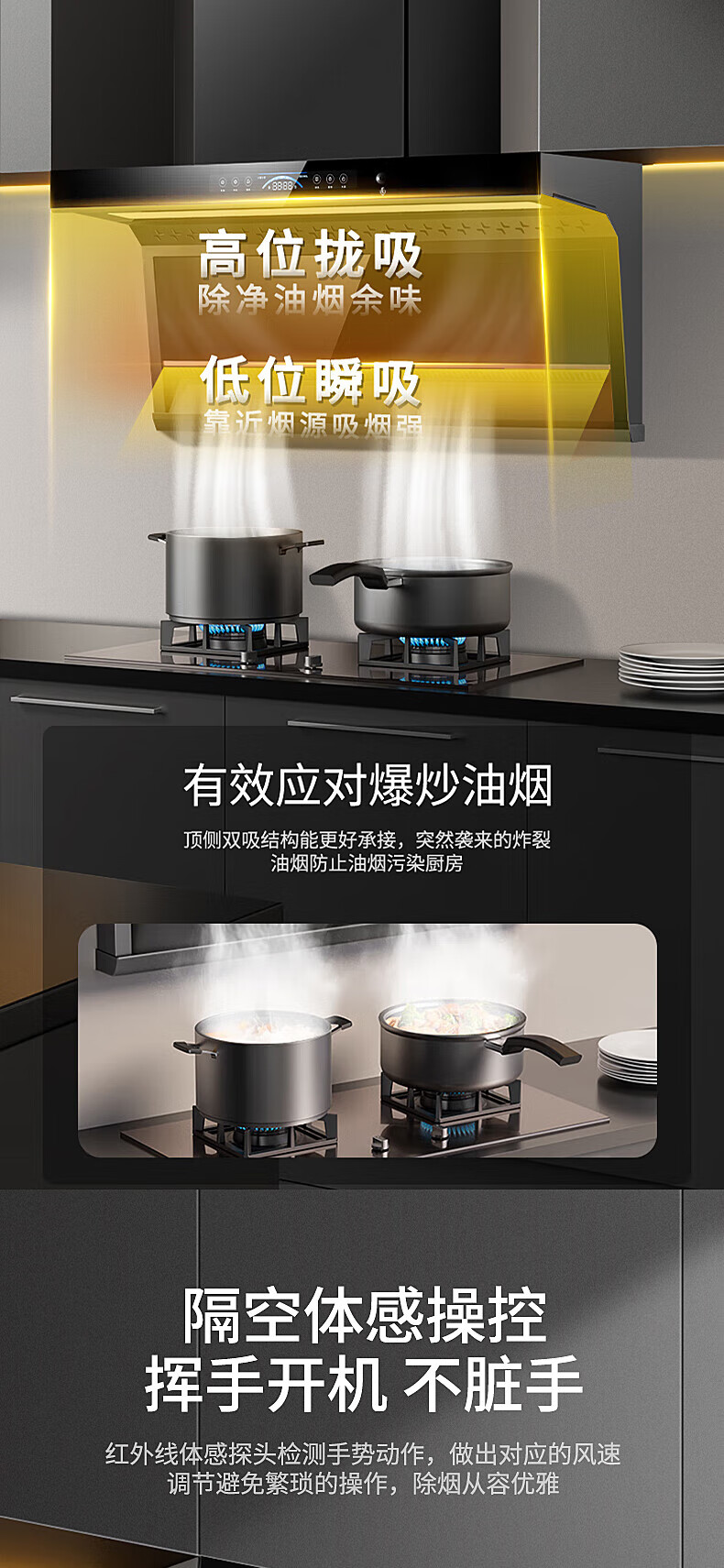 • 商品名称:守爱好太太油烟机 顶侧双吸抽油烟机7字型 28立方大吸力 挥手体感 智能语音控制 免拆自动热清洗CXW-328-A2 CXW-328-A2/台