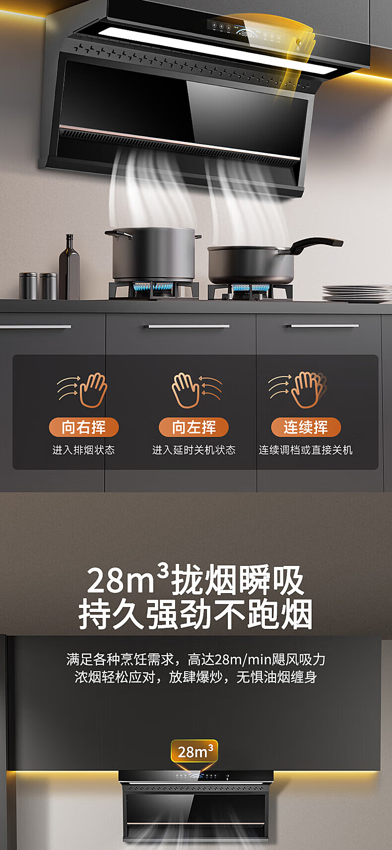 守爱好太太油烟机 顶侧双吸抽油烟机7字型 28立方大吸力 挥手体感 智能语音控制 免拆自动热清洗CXW-328-A2 CXW-328-A2/台