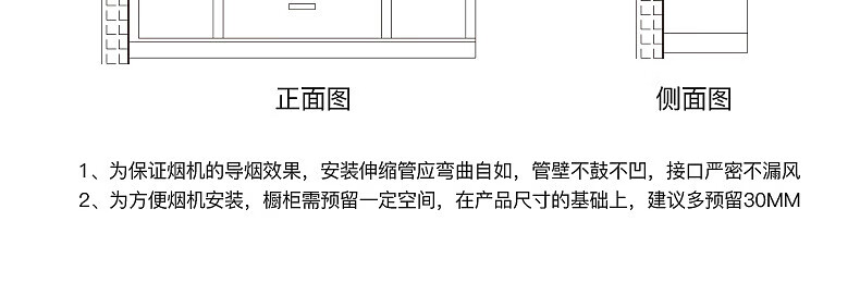 包装清单: 挂板 × 1、出风口 × 1、油杯 × 1、烟管1.5米 × 1、螺丝包 × 1、保修卡 × 1、说明书 × 1;