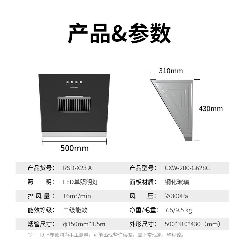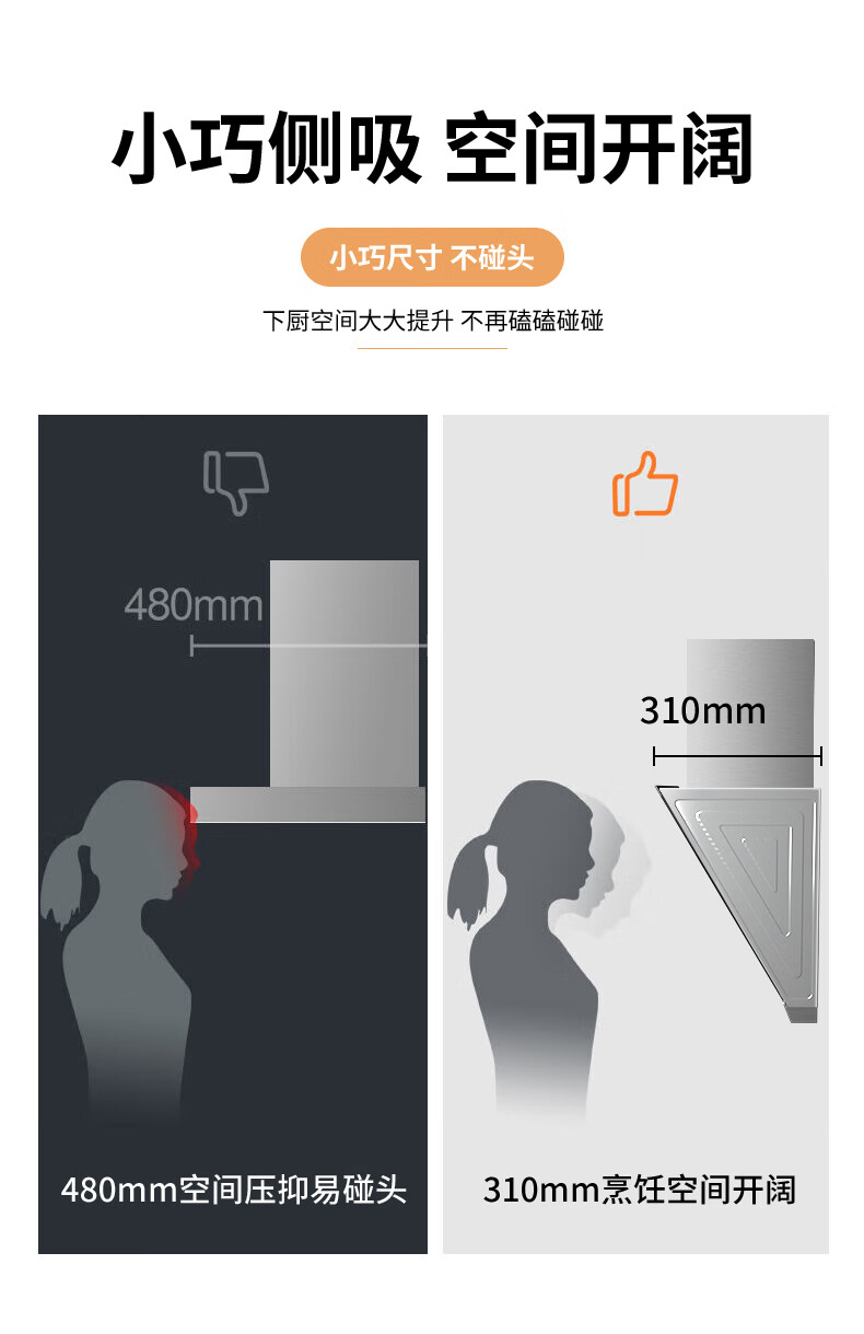 商品名称: 荣事达抽油烟机小户型侧吸式油烟机家用500mm小烟机大风量吸油烟机出租屋公寓RSD-X23A(含安装) CXW-268-C621/台
