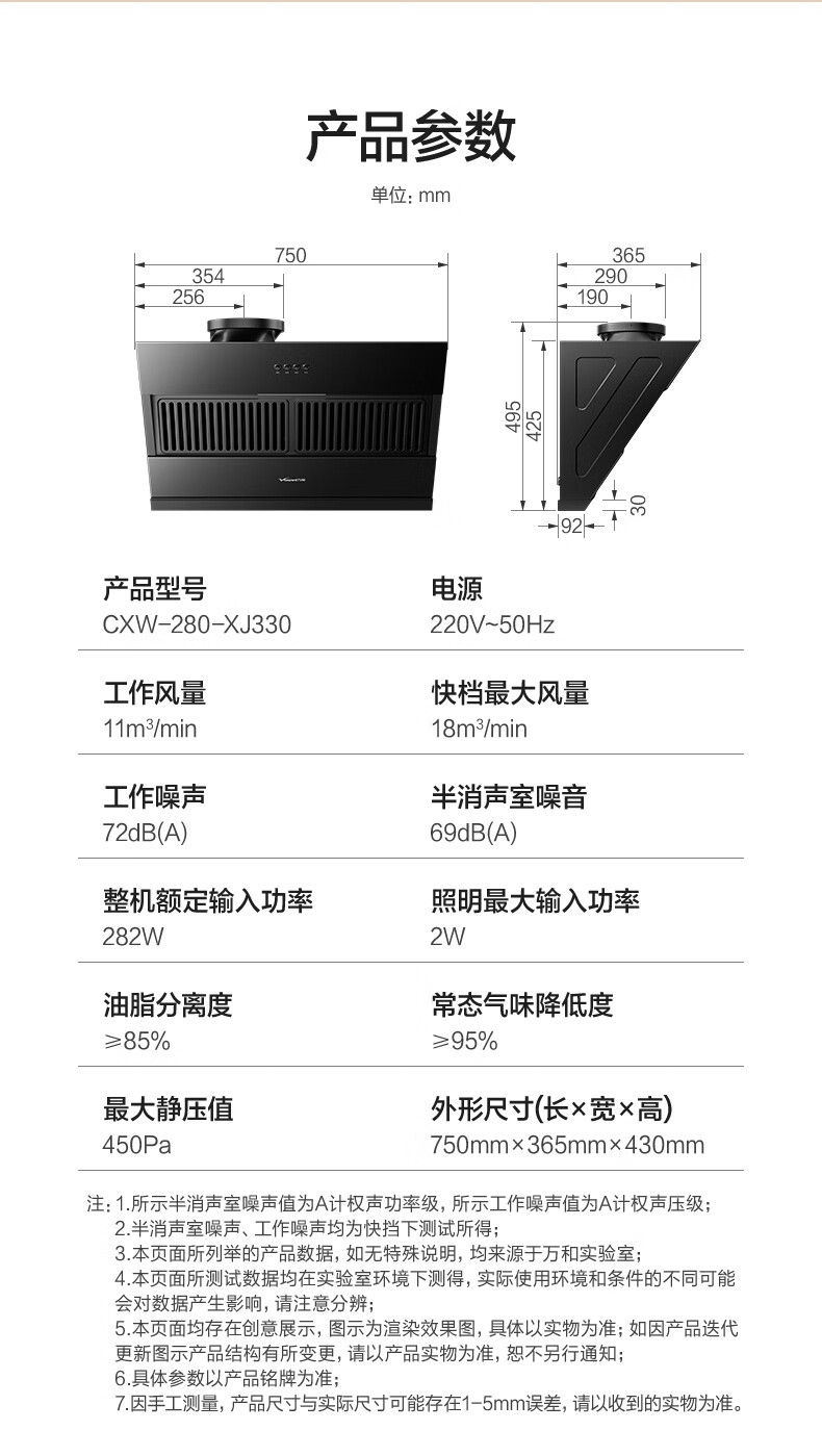 • 商品名称:万和【小双翼XJ330·1腔对1灶】侧吸抽排家用18风量大吸力小尺寸出租房一级能效家电油烟机 CXW-280-XJ330/台