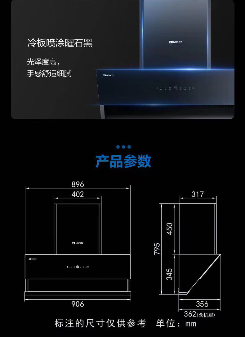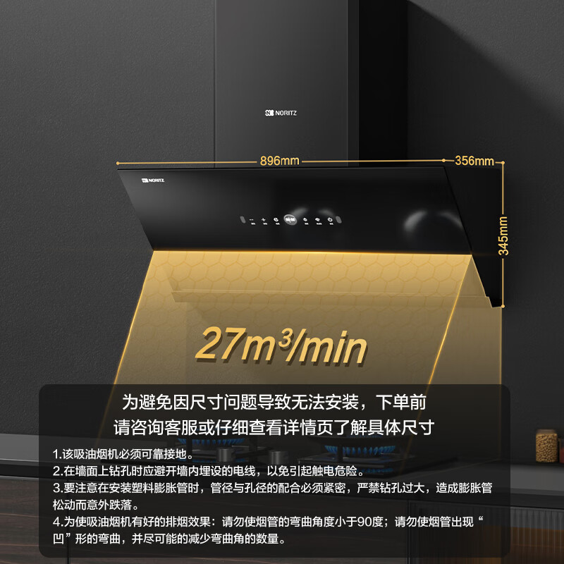 商品名称: 能率(NORITZ)侧吸抽油烟机 27大风量近吸排油烟机智控挥手降噪家用自清洁EC02 CXW-188-EC02/台