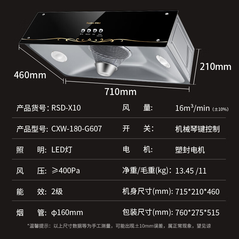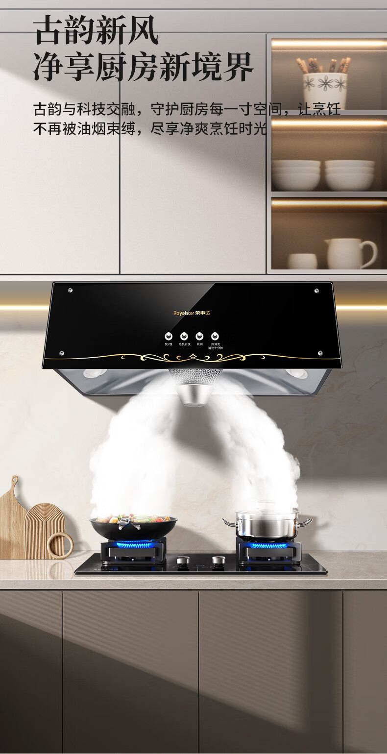 • 商品名称:荣事达 大吸力中式油烟机免拆洗脱排油烟机顶吸式排烟机 (不含安装)鎏金面板+机械按键热清洁X10 CXW-268-C621/套