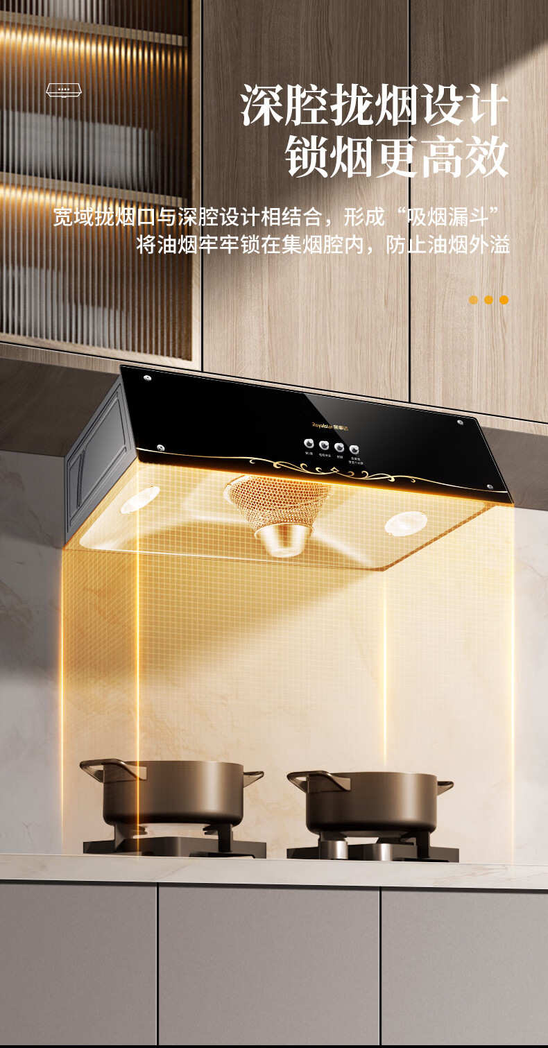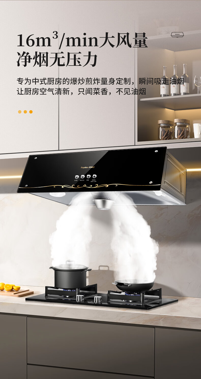 家用电器  > 厨卫大电  > 油烟机  >  荣事达/Royalstar  >  荣事达 大吸力中式油烟机免拆洗脱排油烟机顶吸式排烟机 (不含安装)鎏金面板+机械按键热清洁X10 CXW-268-C621/套