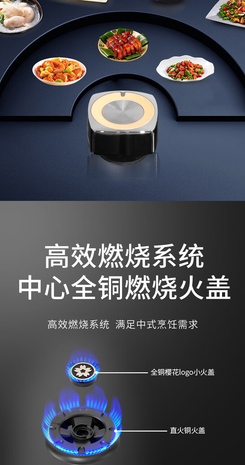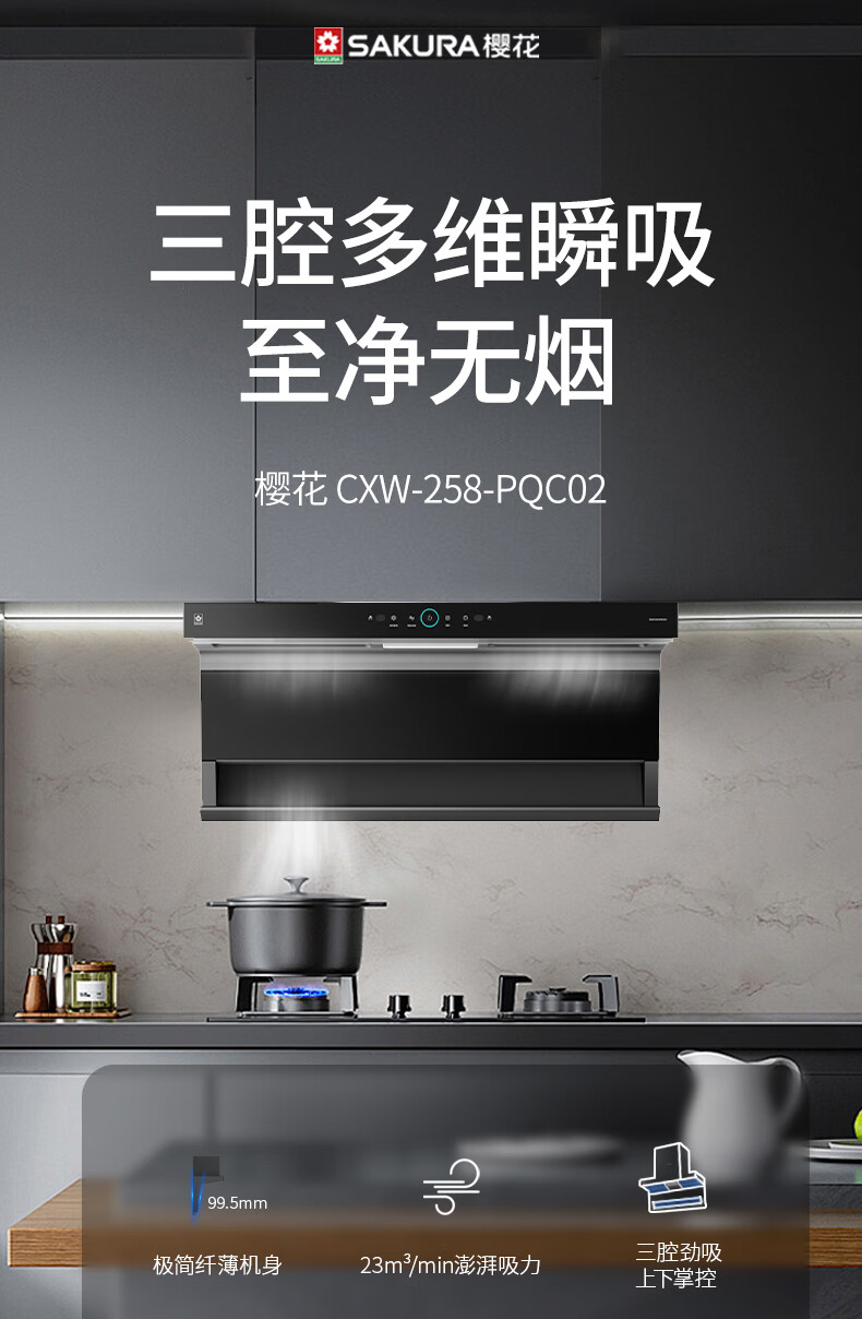 家用电器  > 厨卫大电  > 油烟机  >  樱花/SAKURA  >  樱花(SAKURA)顶侧三腔多维瞬吸23m³/min大风量橱柜齐平5.2KW钢化玻璃灶PQC02+JGE06天然气【套装商品】 CXW-258-PQC02/台
