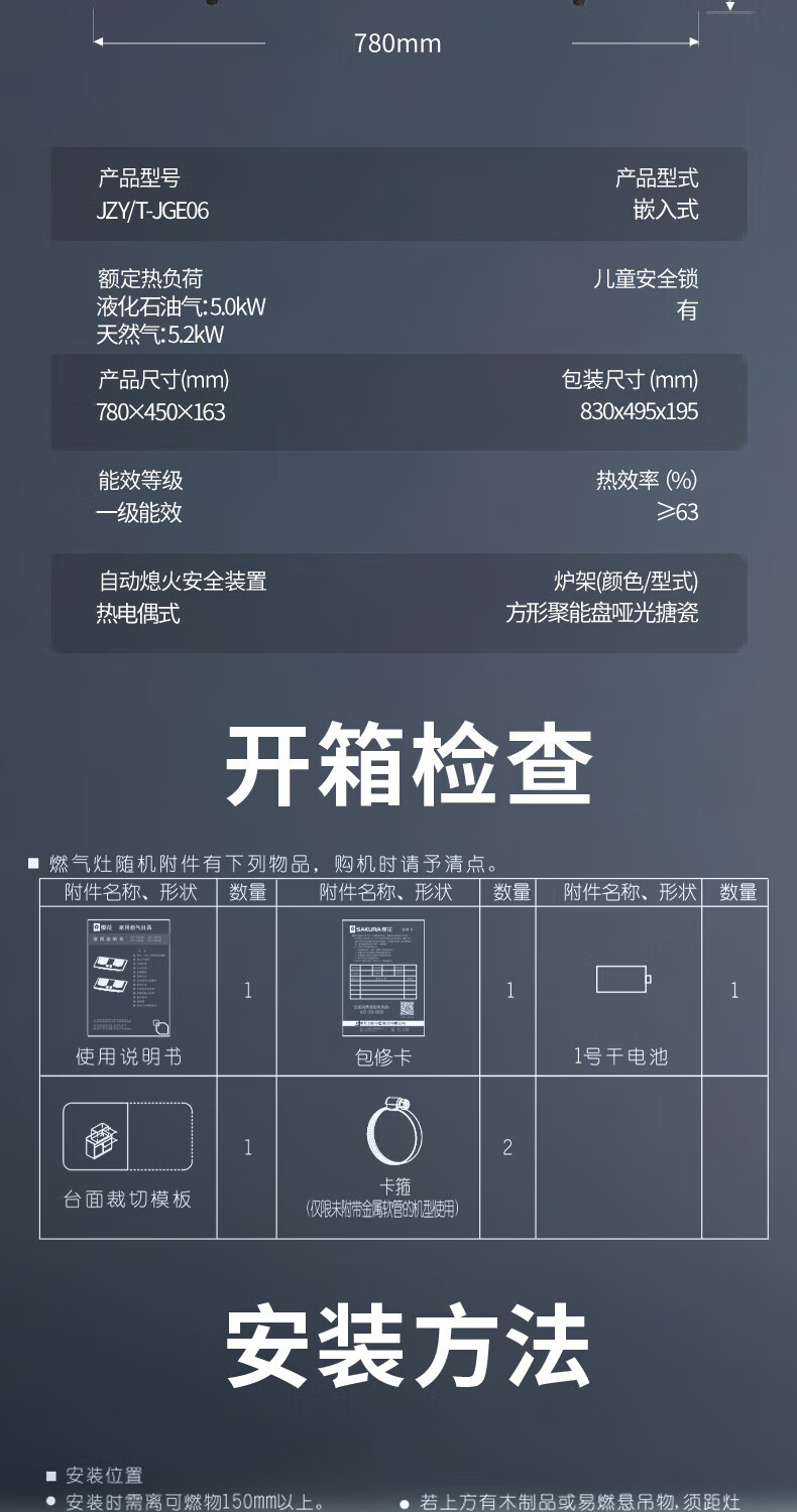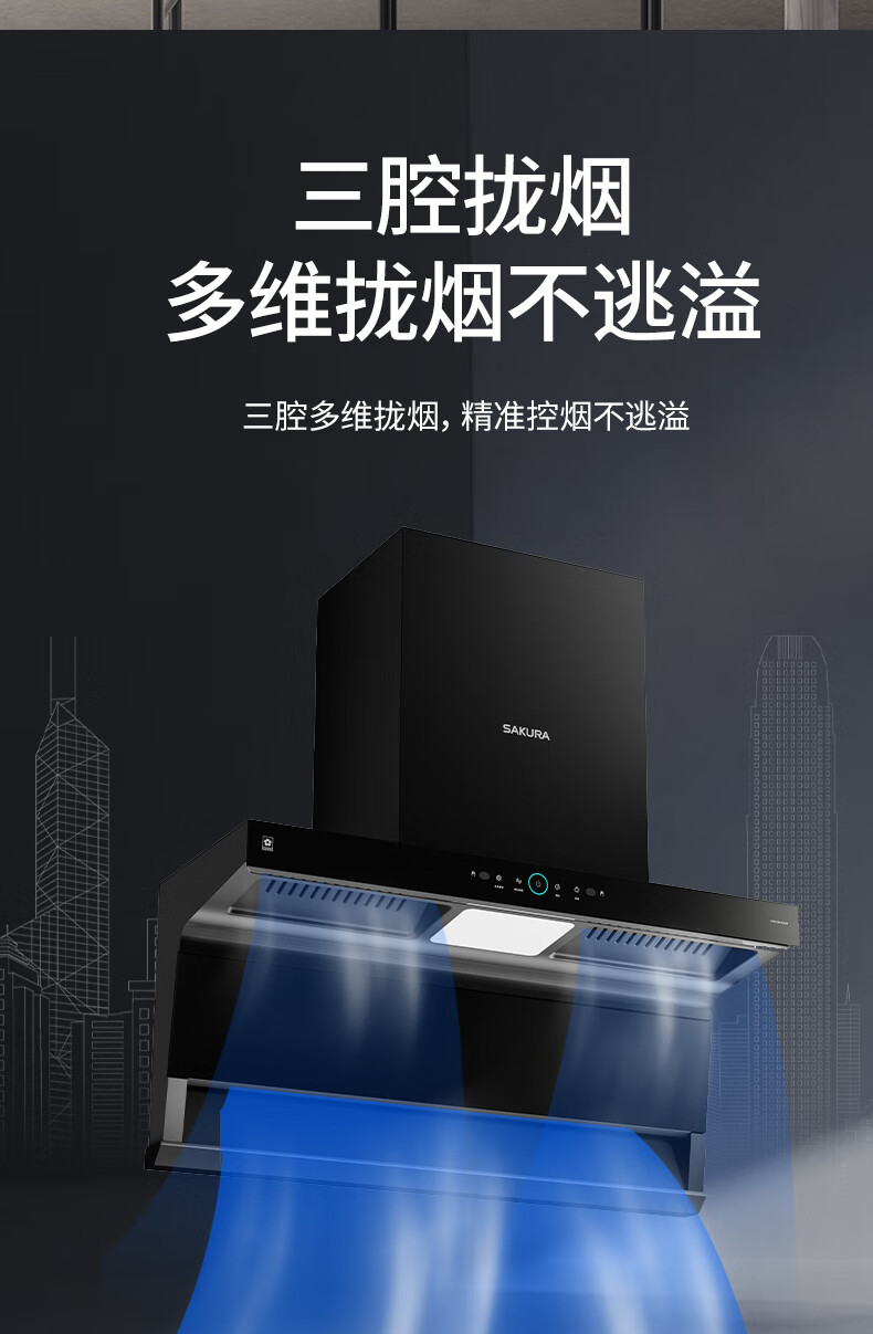 • 商品名称:樱花(SAKURA)顶侧三腔多维瞬吸23m³/min大风量橱柜齐平5.2KW钢化玻璃灶PQC02+JGE06天然气【套装商品】 CXW-258-PQC02/台