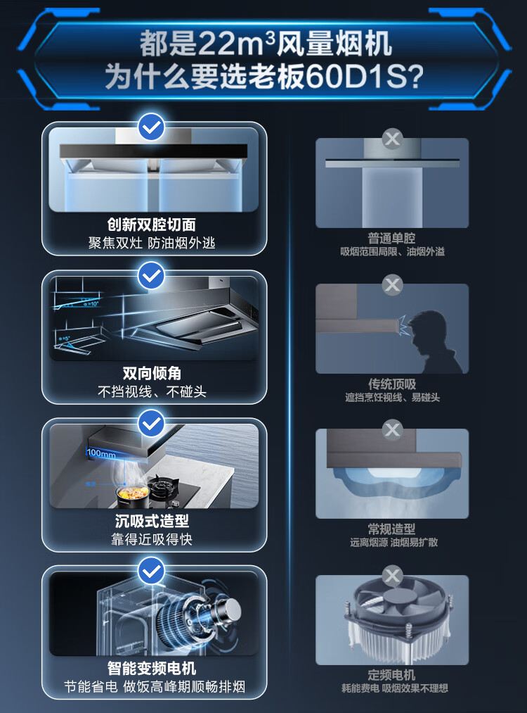 家用电器  > 厨卫大电  > 油烟机  >  老板/ROBAM  >  老板【变频双腔】60D1S欧式22风量顶吸式油烟机抽吸油烟机家用一级能效可配燃气灶 60D1S/台