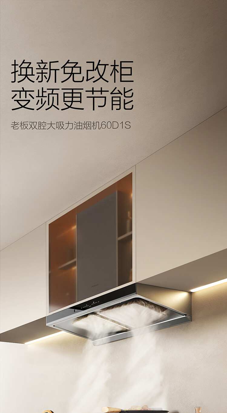 • 商品名称:老板【变频双腔】60D1S欧式22风量顶吸式油烟机抽吸油烟机家用一级能效可配燃气灶 60D1S/台