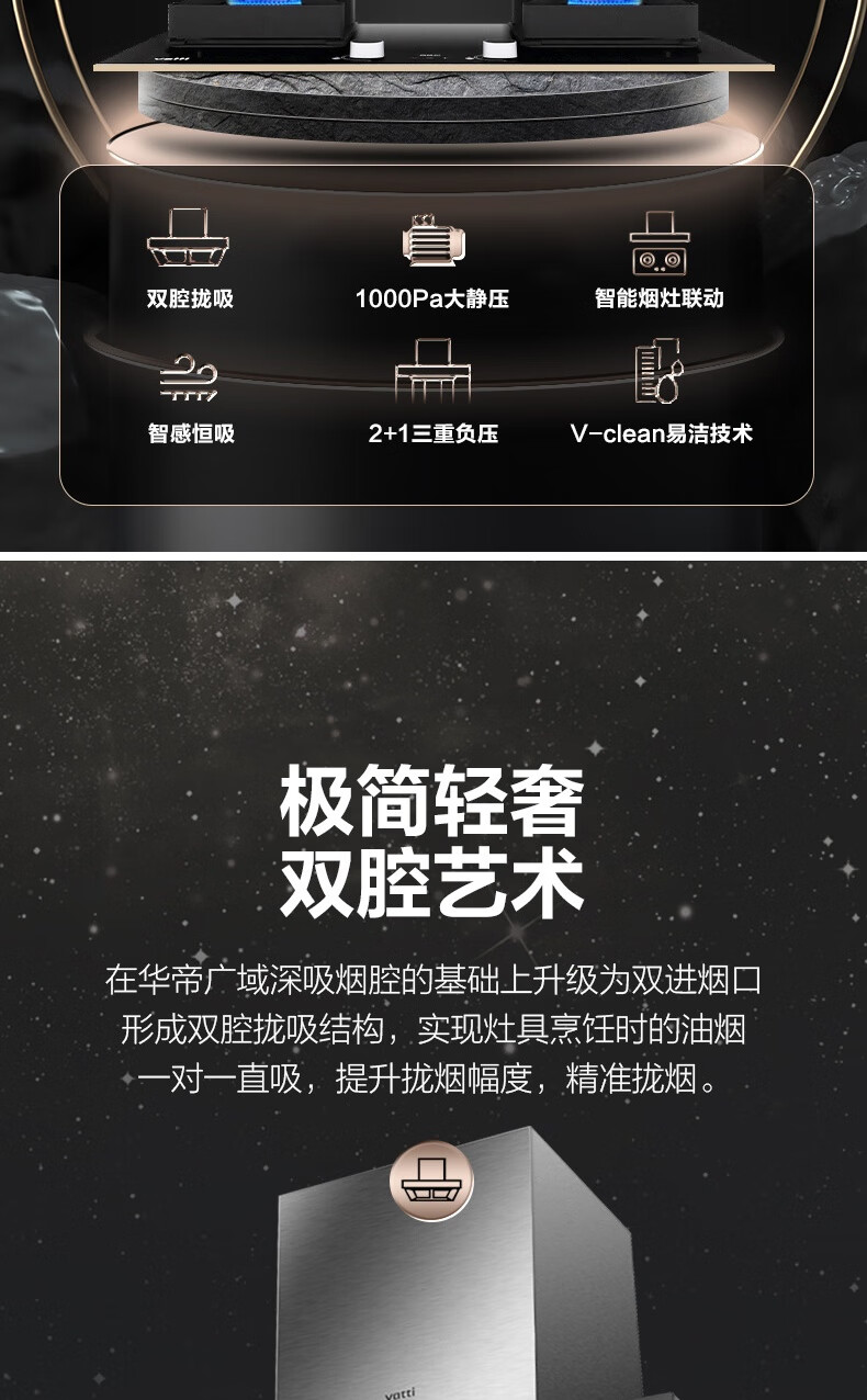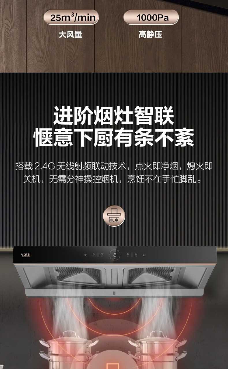 家用电器  > 厨卫大电  > 油烟机  >  华帝  >  华帝CXW-200-XJ411S双腔拢吸1000Pa大静压25m³吸力烟灶联动三重负压挥手智控一级能效顶吸油烟机 CXW-200-XJ411S/台