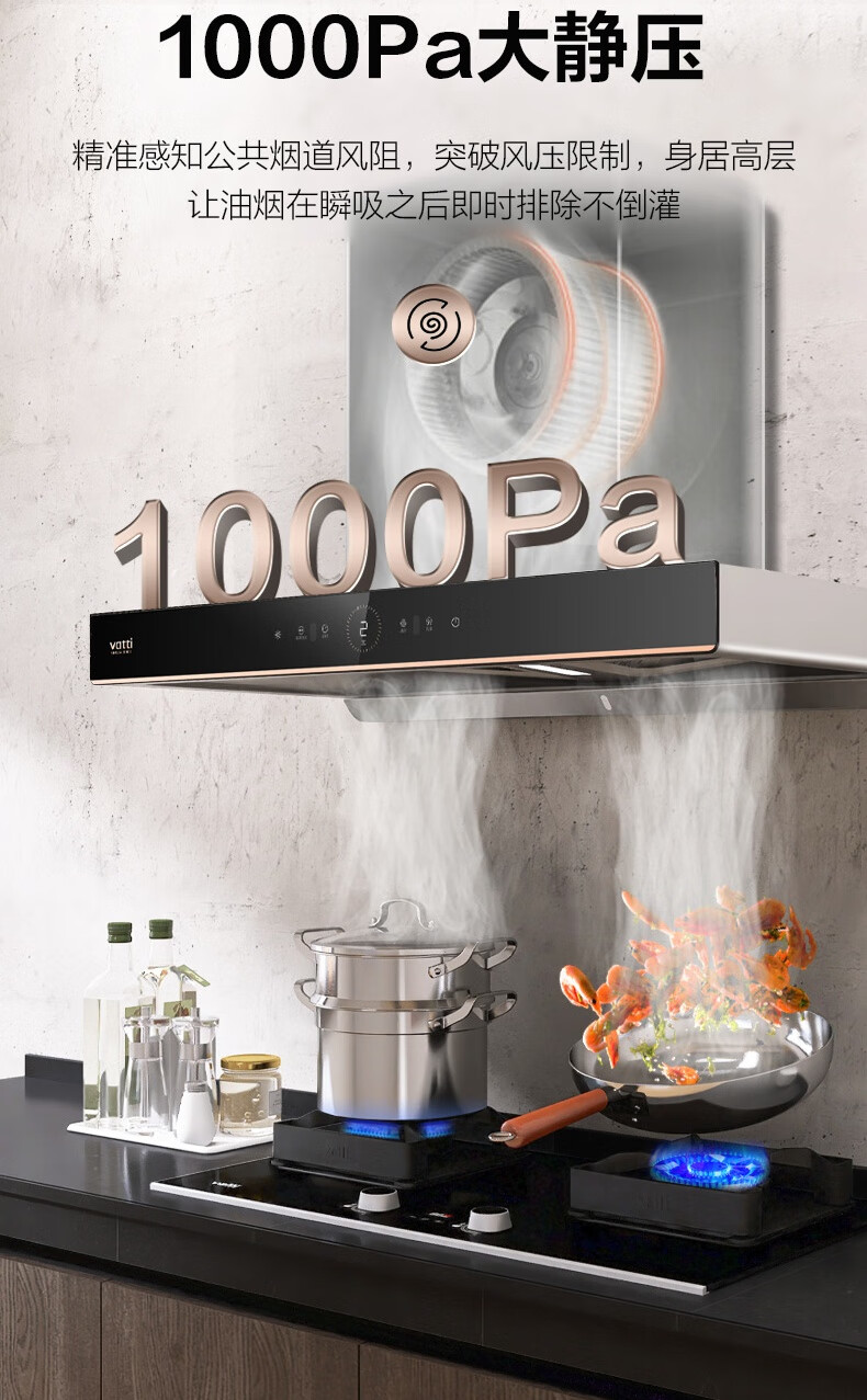 华帝CXW-200-XJ411S双腔拢吸1000Pa大静压25m³吸力烟灶联动三重负压挥手智控一级能效顶吸油烟机 CXW-200-XJ411S/台