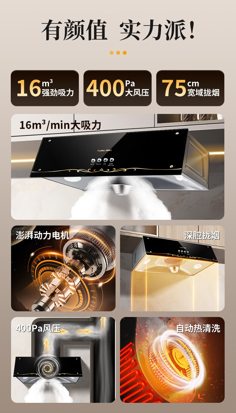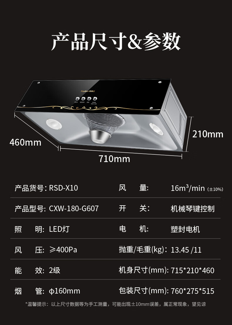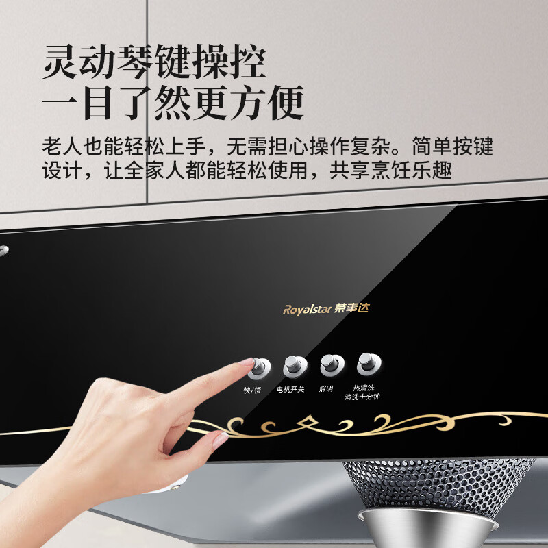 • 商品名称:荣事达 大吸力中式油烟机免拆洗脱排油烟机顶吸式排烟机 (不含安装)鎏金面板+机械按键热清洁X10 CXW-268-C621/套